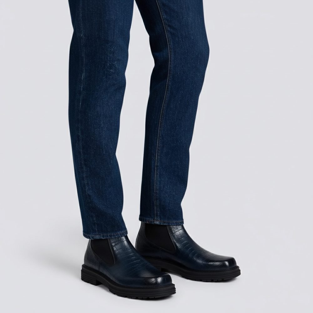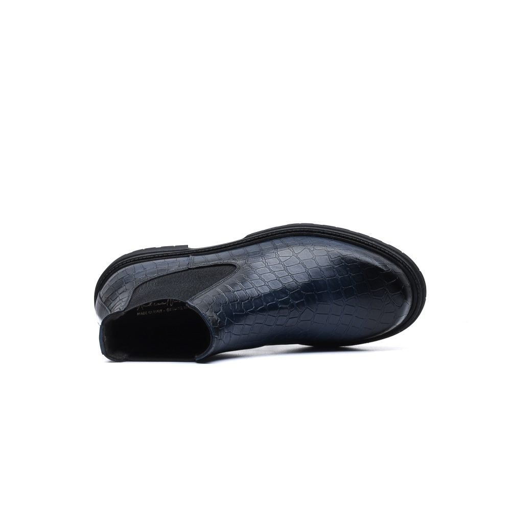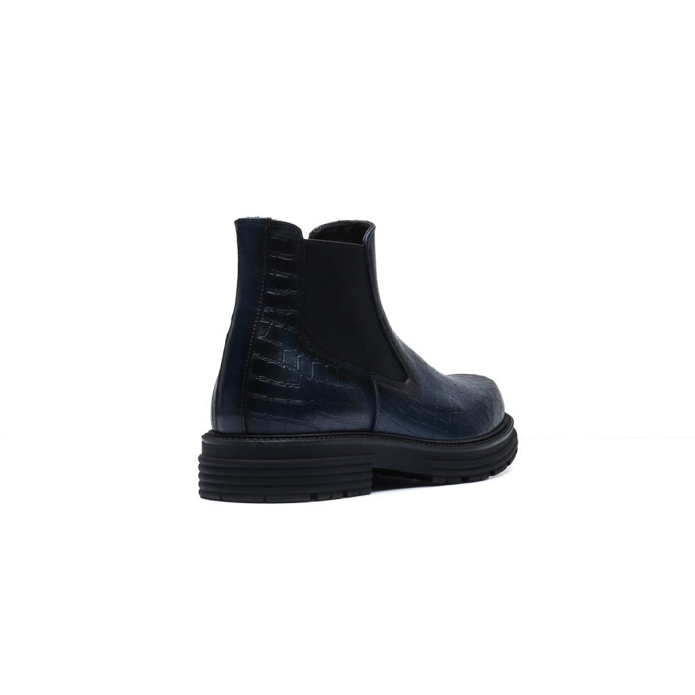 Questi stivaletti Beatles sono realizzati in pregiata pelle di vitello con stampa coccodrillo tinta a mano con le sfumature che ne esaltano il carattere artigianale.