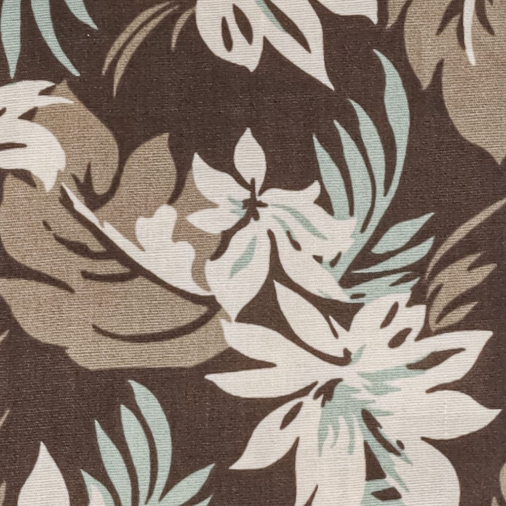 Camicia Made in Italy, resa particolare dalla fantasia floreale nel colore beige e verde su base marrone, collo alla francese con polsini con angoli squadrati e due bottoni.