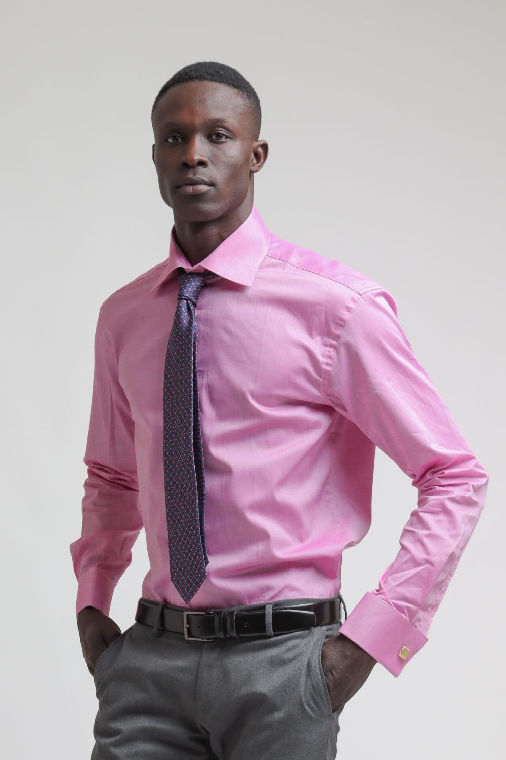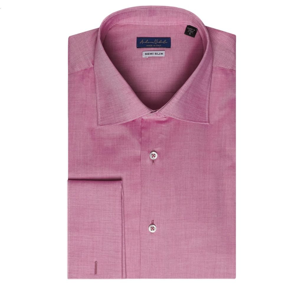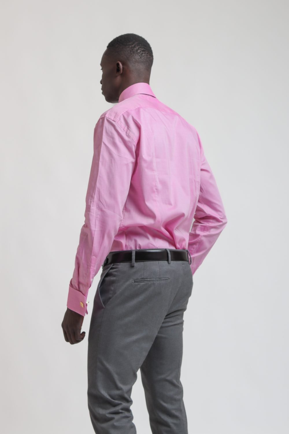Camicia Made in Italy, collo mezzo francese con polsini gemelli.