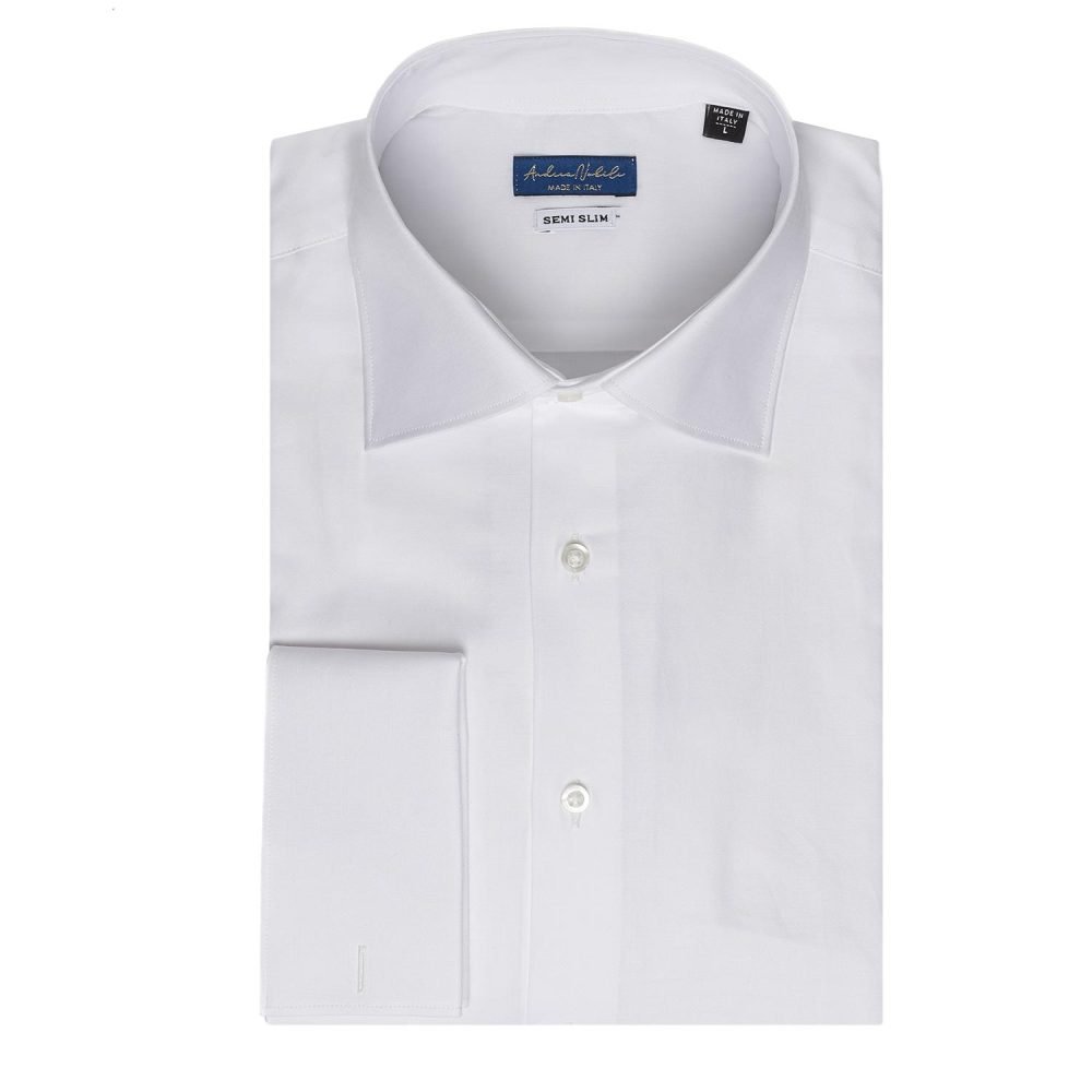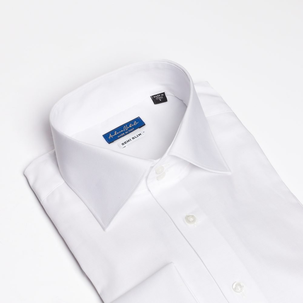 Camicia Made in Italy, collo mezzo francese con polsini gemelli.