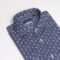 Camicia Made in Italy, resa particolare dalla fantasia geometrica nel colore blu e azzurro su base bianca, collo alla francese con polsini con angoli squadrati e due bottoni.