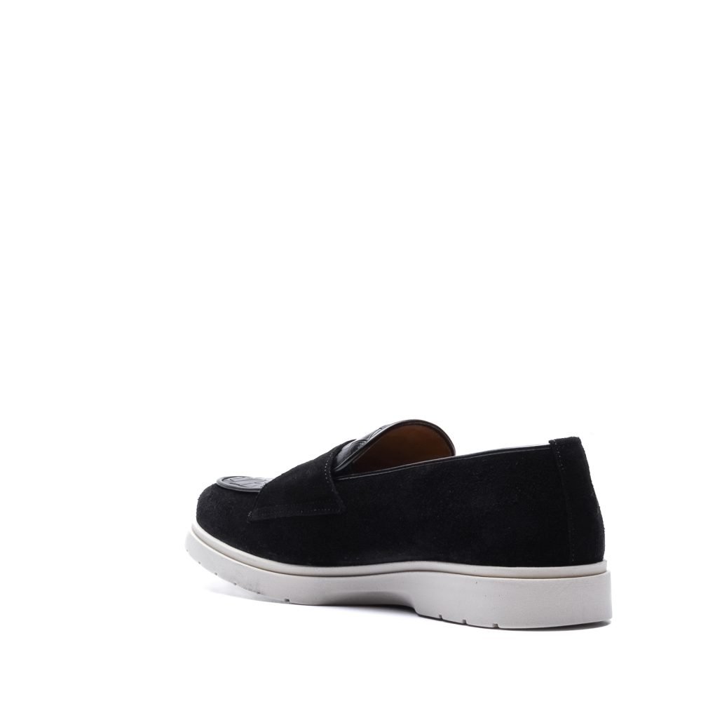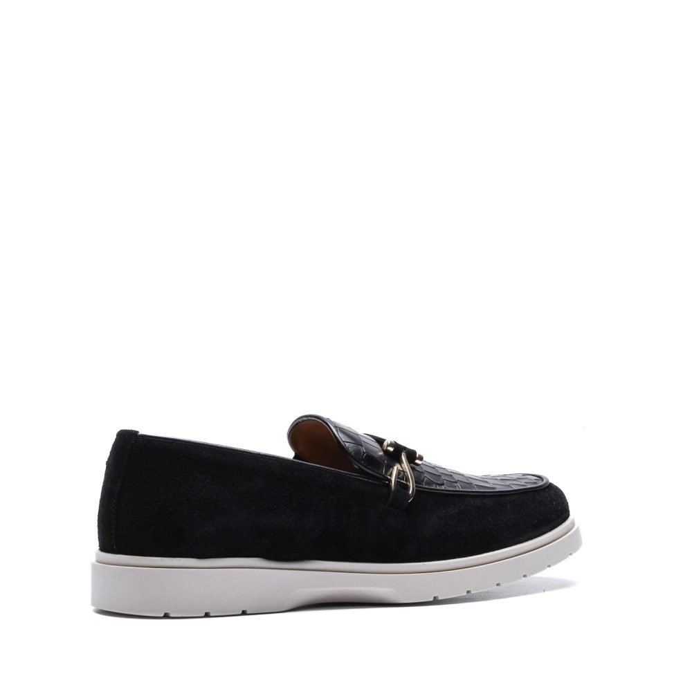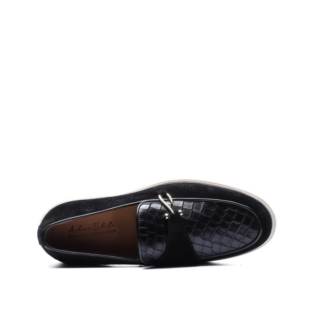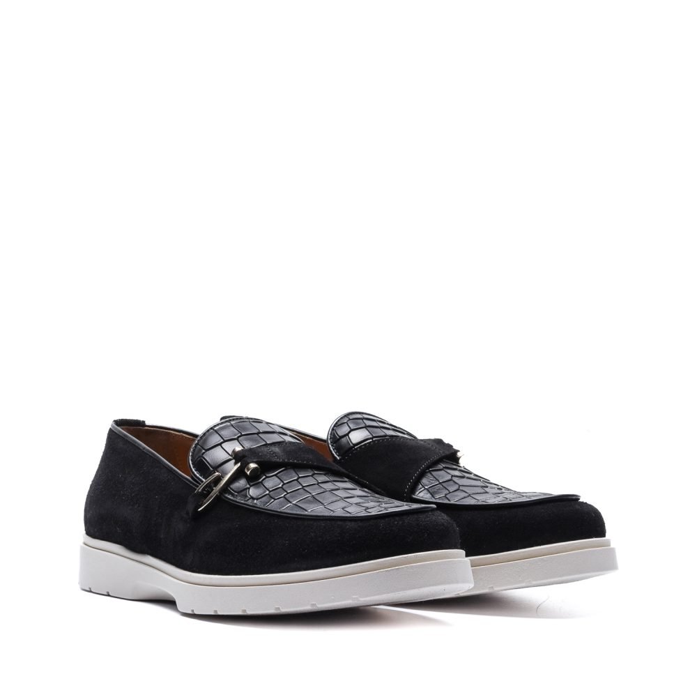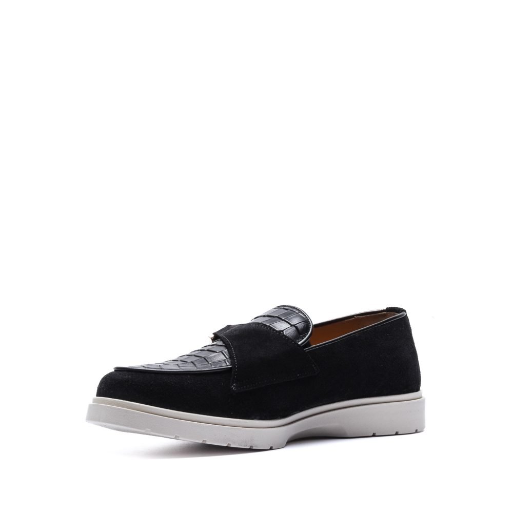 Loafer in Black Suede and Crocodile with hook