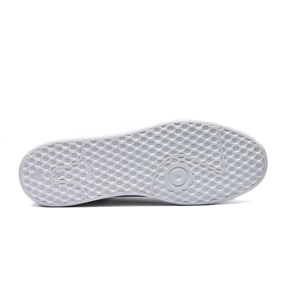 Suola bianca con cucitura perimetrale e fondo antiscivolo.