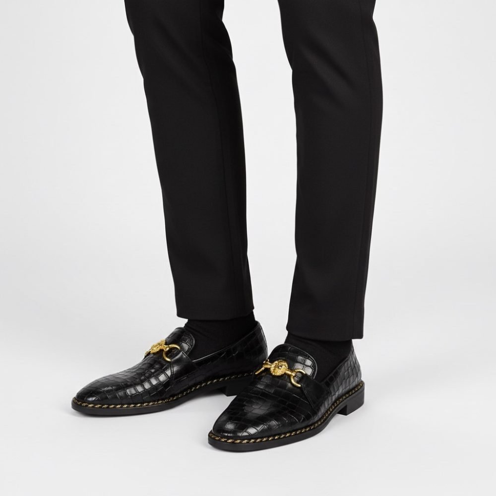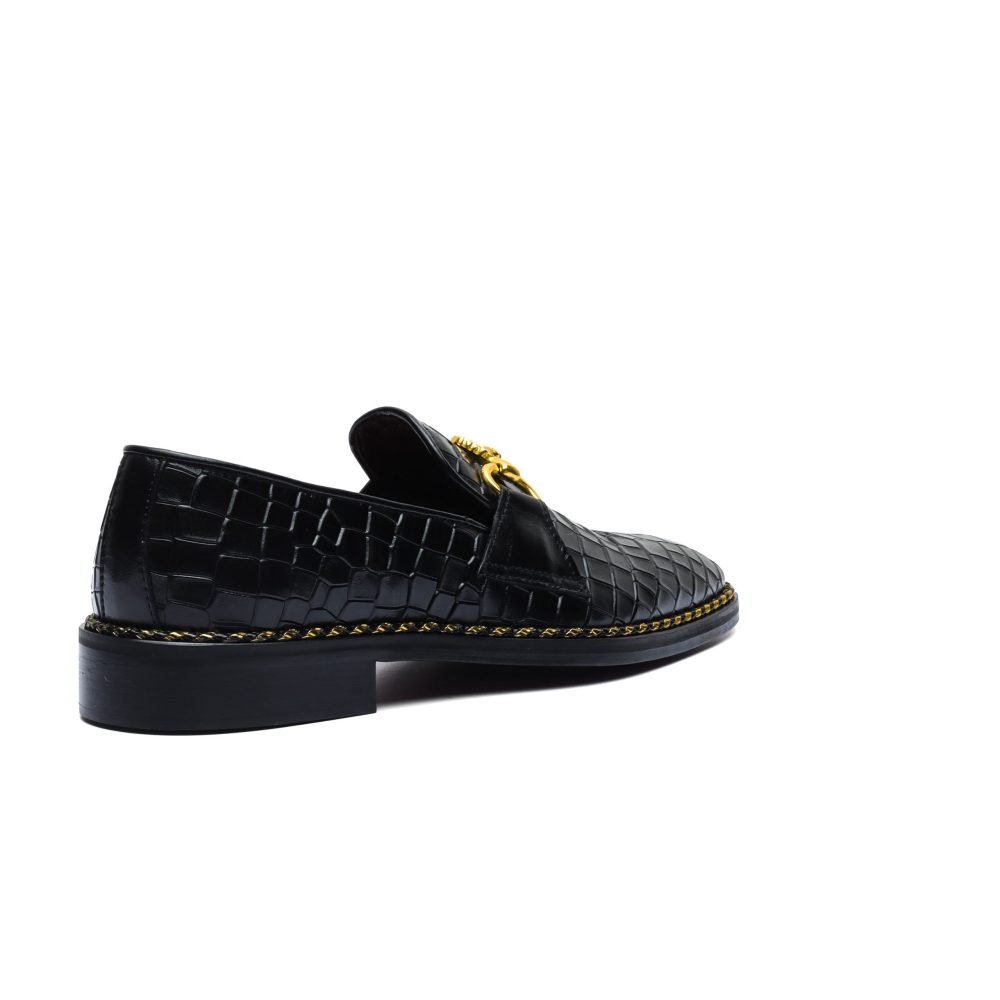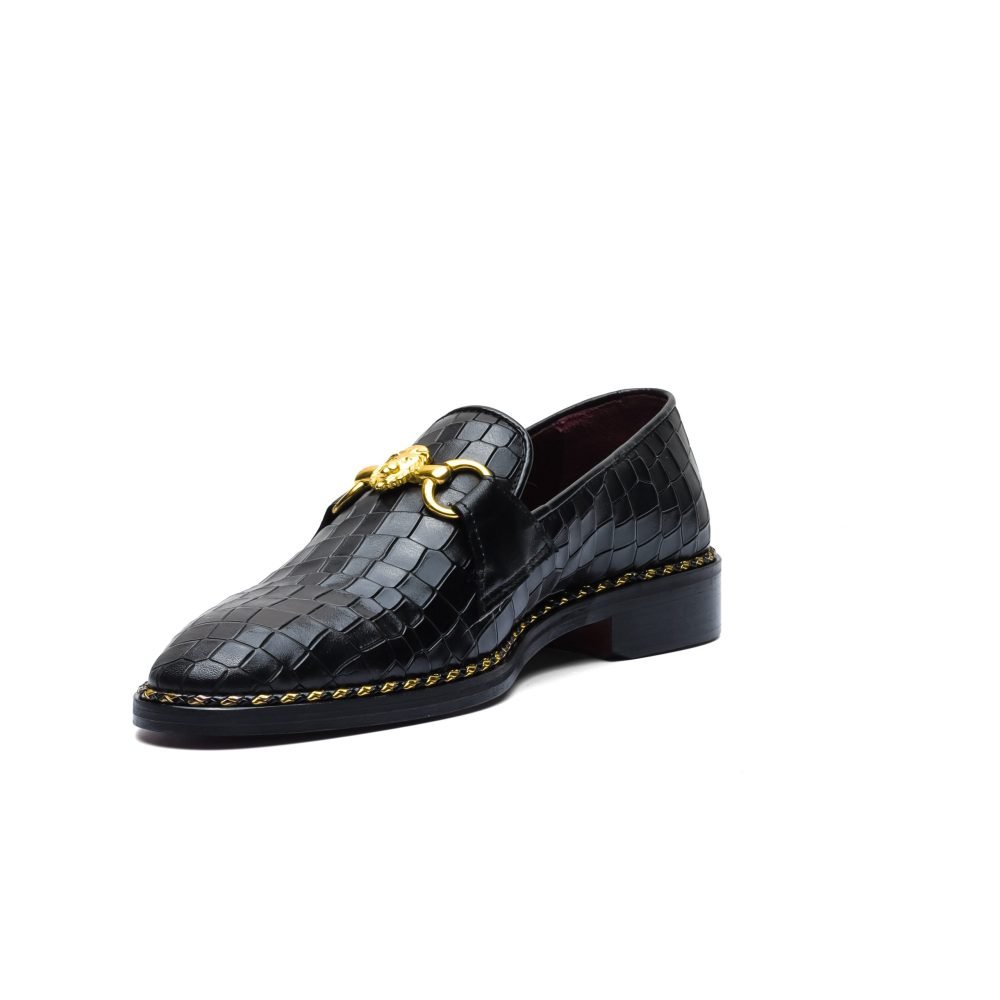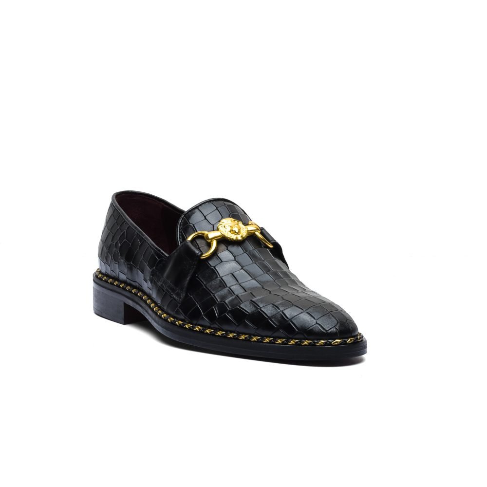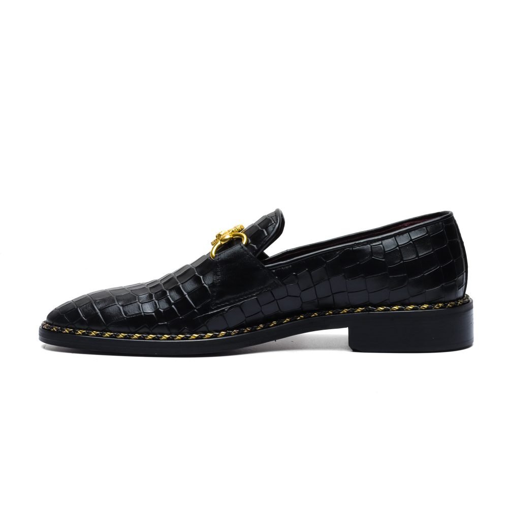 Calzature artigianali Made in Italy modello Mocassino, rese particolari dalla pelle con stampa coccodrillo.