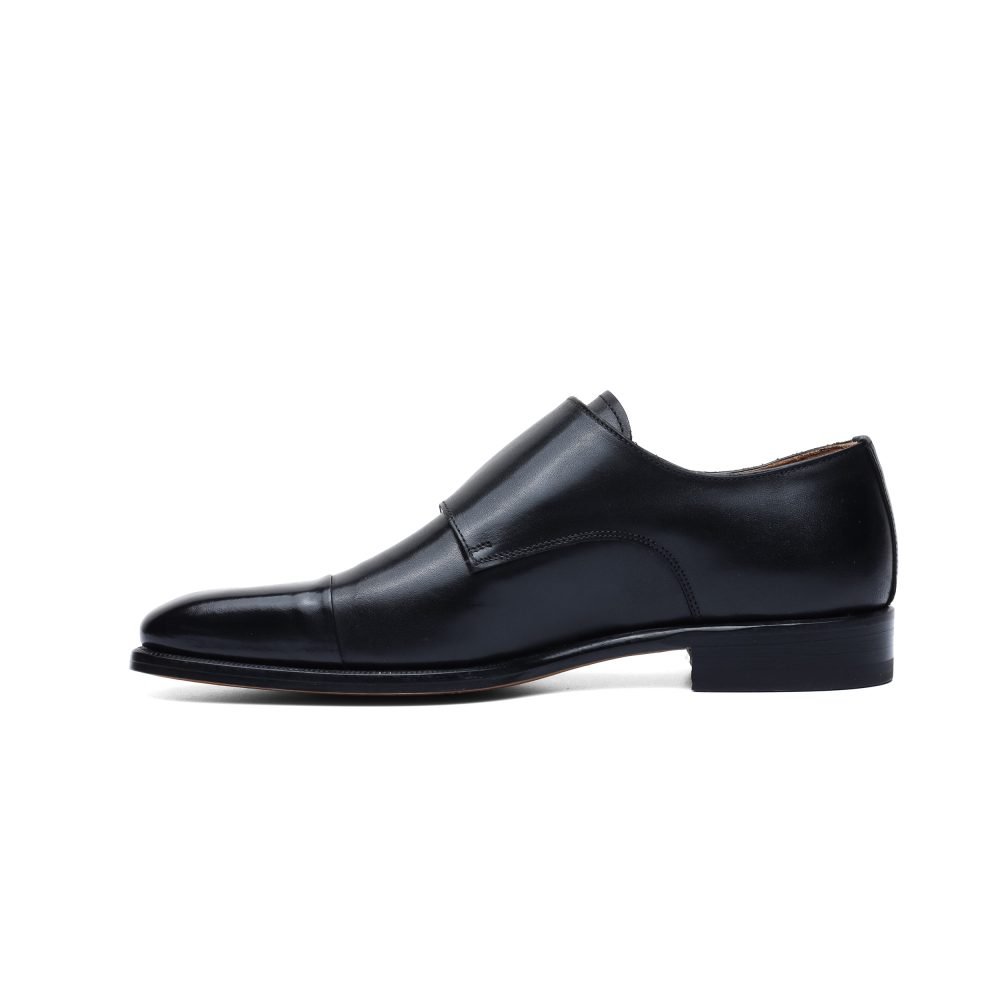 Monk Strap in Black Leather with Tip