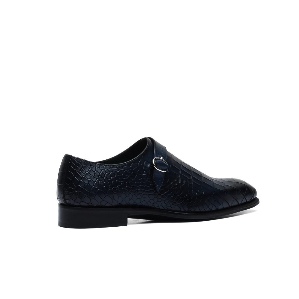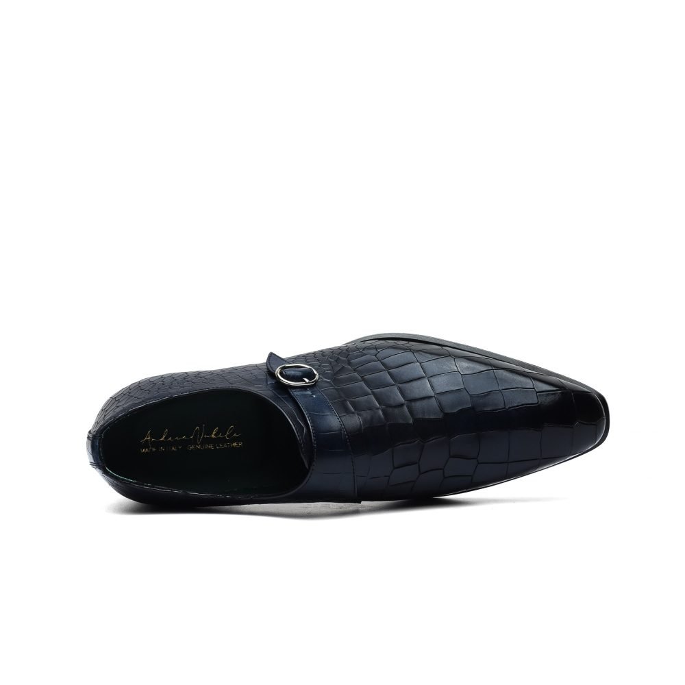 Calzature artigianali Made in Italy modello Monk Strap o anche conosciute come “mono fibbia”, caratterizzate dalla stampa coccodrillo su tutta la tomaia.