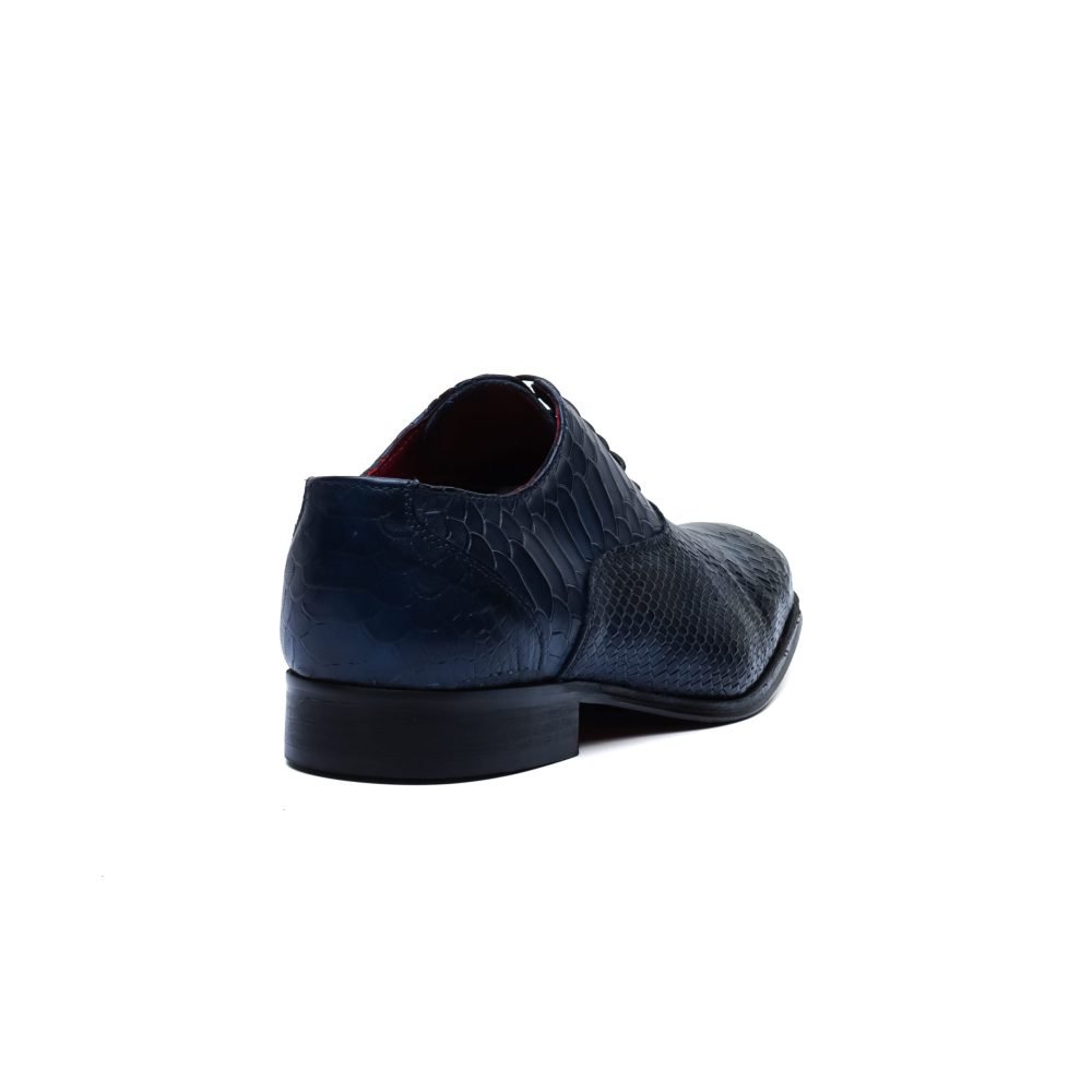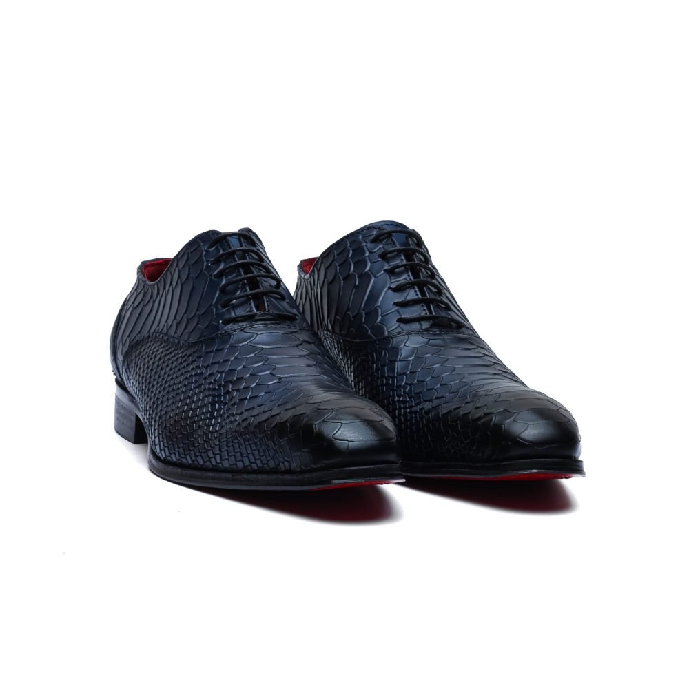 Calzature stringate artigianali Made in Italy modello Oxford o anche denominate “Francesine”, caratterizzata dalla stampa effetto anaconda su tutta la tomaia.