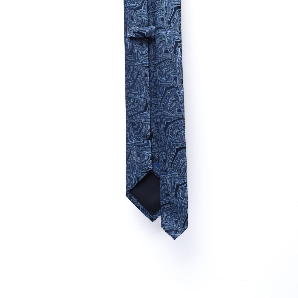 L’eleganza prende forma organica con questa cravatta in pura seta italiana, interamente realizzata a mano. Il motivo “Leaf”, ispirato a linee sinuose e intrecci vegetali, crea un effetto visivo di grande movimento e raffinatezza.