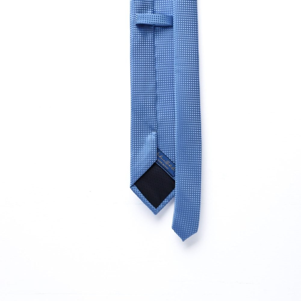 Cravatta in pura seta jacquard dal raffinato motivo micropois tono su tono.