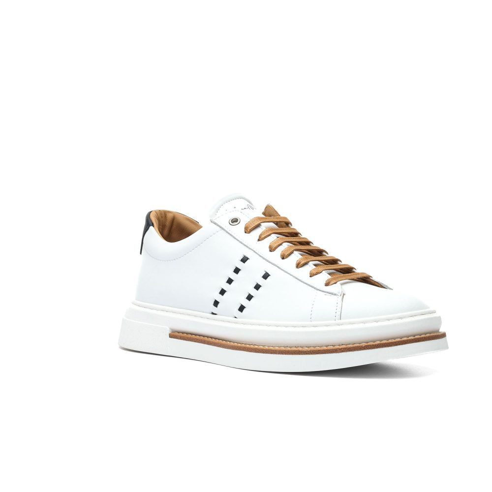 Lacci a contrasto nel colore beige e linguetta con salpa bianca e logo in corsivo a contrasto.