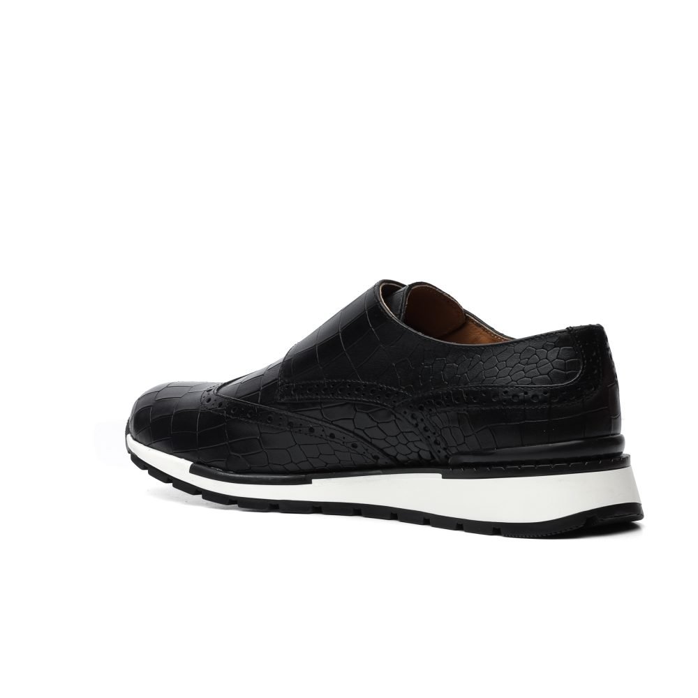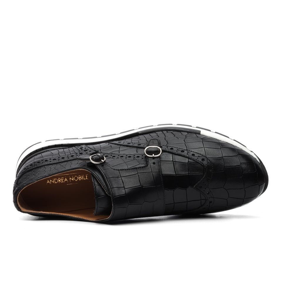 Sneakers Monk Strap Nero con Stampa Coccodrillo
