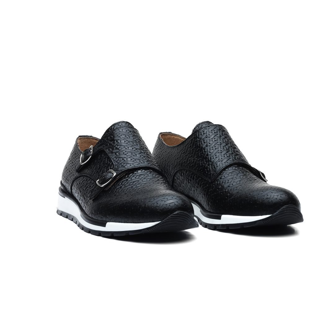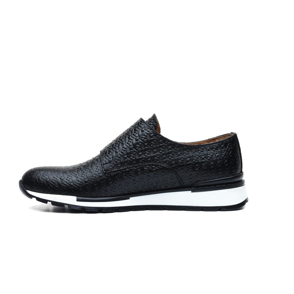 Sneakers Monk Strap Nera con Stampa Intreccio