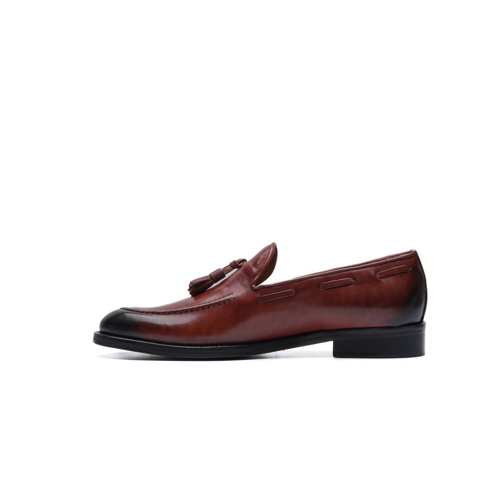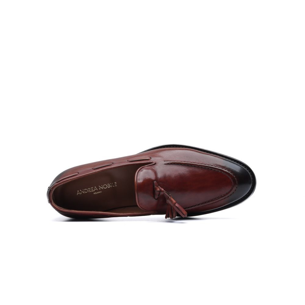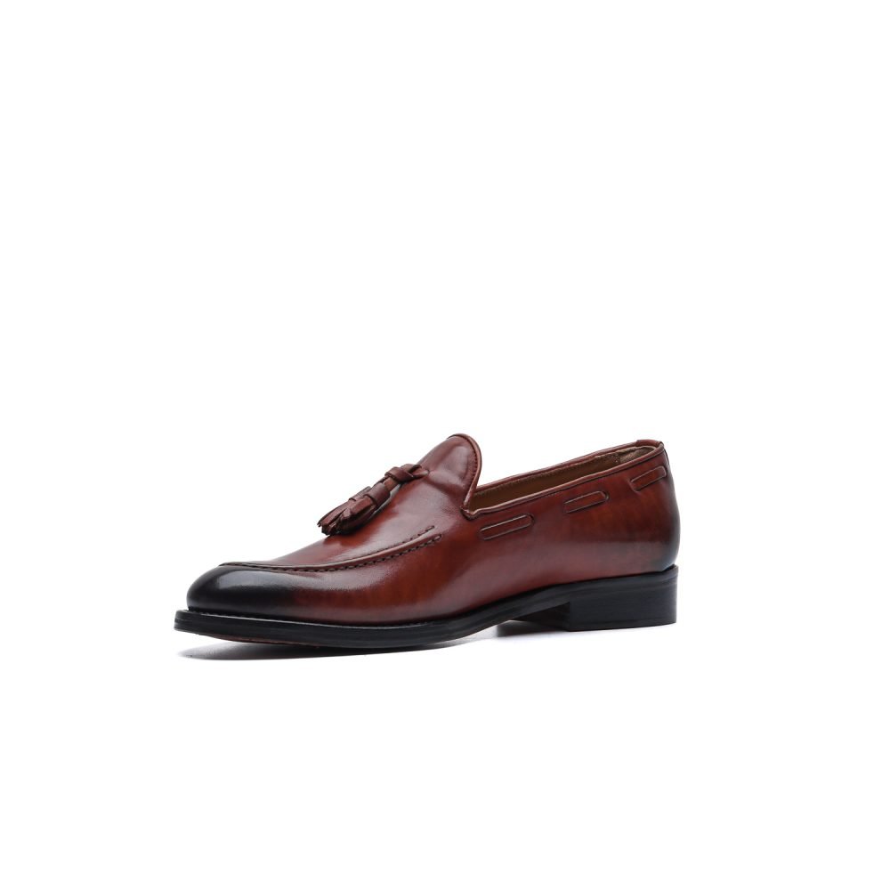 Calzature artigianali Made in Italy modello Tassel Loafer, conosciute anche come “Mocassino con Nappine”, rese particolari dalle cuciture in rilievo sulla parte superiore della tomaia, evidenziando l’artigianalità.