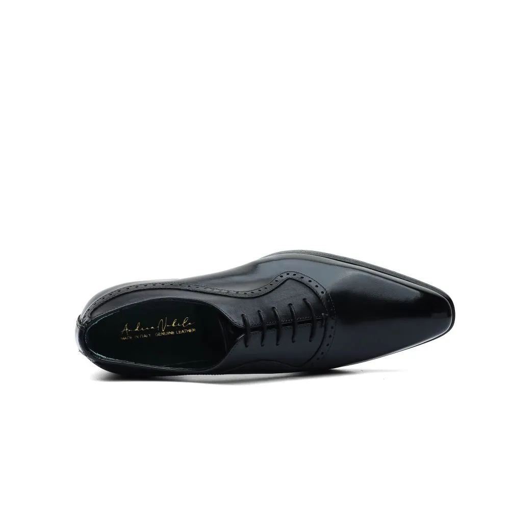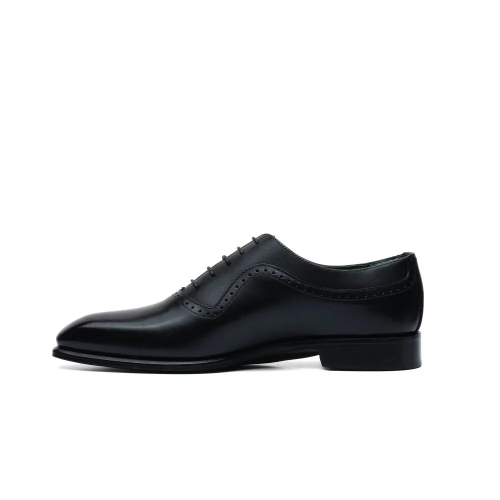 حذاء أكسفورد مصنوع يدويًا برباط، صنع في إيطاليا، يتميز بتصميم بروج في الجزء العلوي.