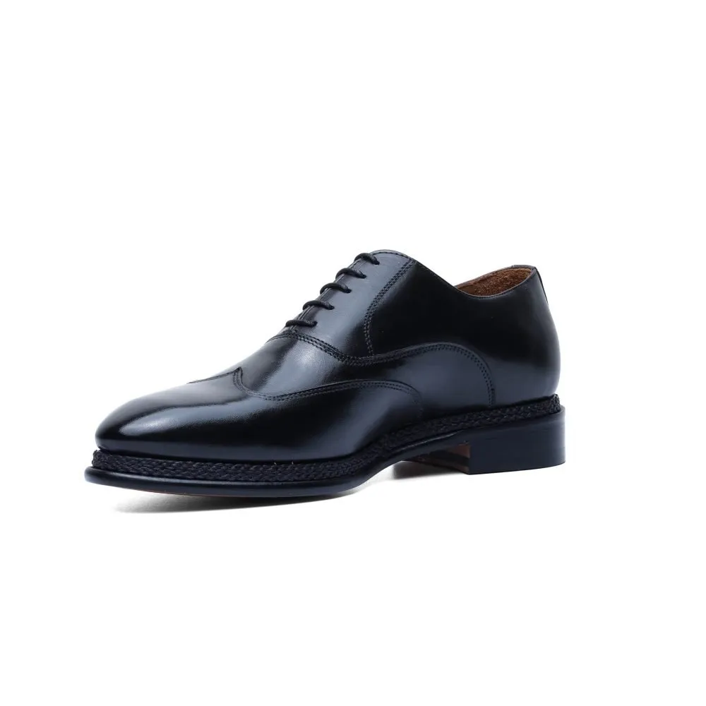 A lucentezza unica di u cuoio chì rende sta scarpa di grande valore, ottenuta cù un prucessu speciale di lucidatura à manu realizatu da artigiani esperti in questa antica tecnica, cù punte è tacchi sfumati.