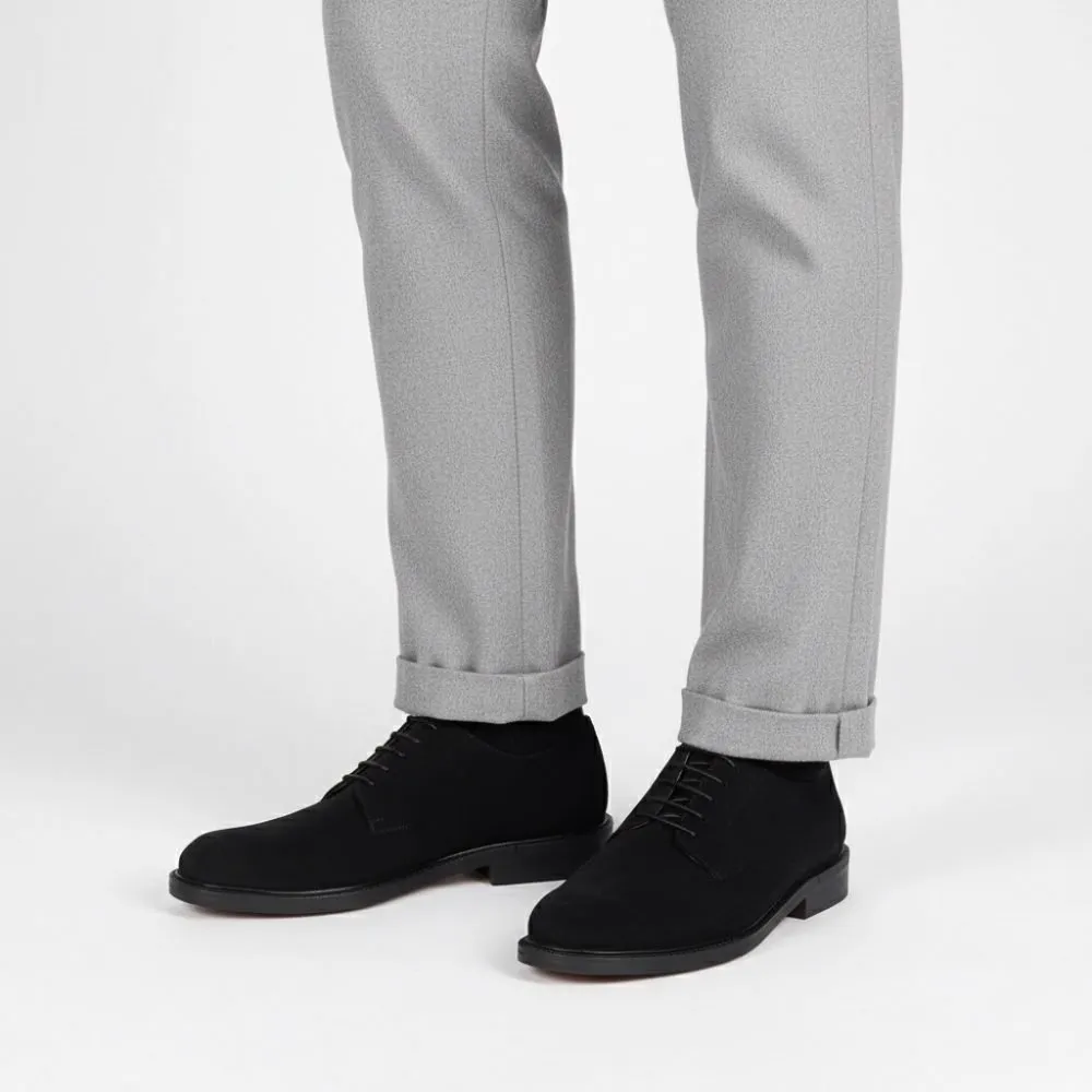Aus schwarz gefärbtem Wildlederkalbsleder.