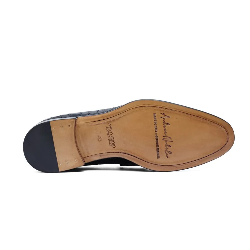 Imprimé crocodileModèle de chaussure artisanale Made in Italy Penny Loafer ou plus communément appelé "Mocassin Penny" au design intemporel.