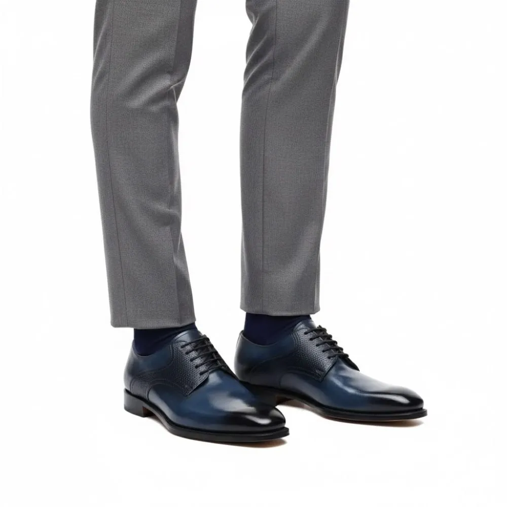 Soulye atizanal ki fèt an Itali, modèl Derby, karakterize pa detay ki sou pati anwo a.