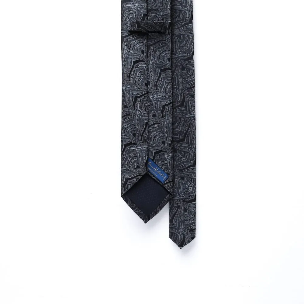 Elegans pran yon fòm òganik ak kravat swa Italyen pi sa a ki fèt alamen nèt. Motif "Fèy" la, enspire pa liy sinueuz ak tise ki sanble ak plant, kreye yon efè vizyèl ki gen anpil mouvman ak rafinman.