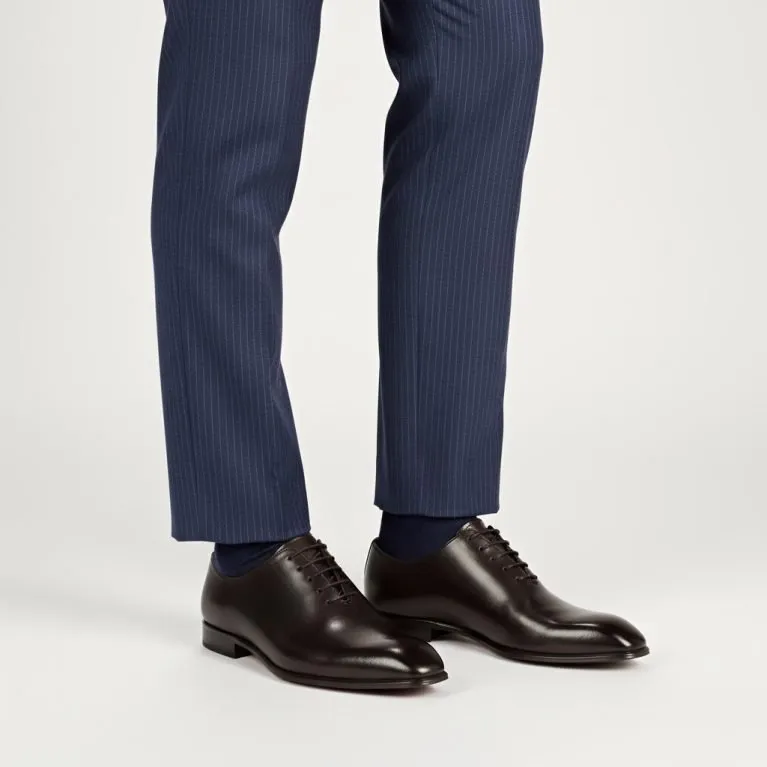 Hver skór tekur á sig mynd í gegnum ferli sem samanstendur af yfir hundrað handvirkum skrefum, allt frá því að skera leðrið til saumaskapar, samsetningar, frágangs og einkennandi handpússunar sem gefur honum gljáa sinn.