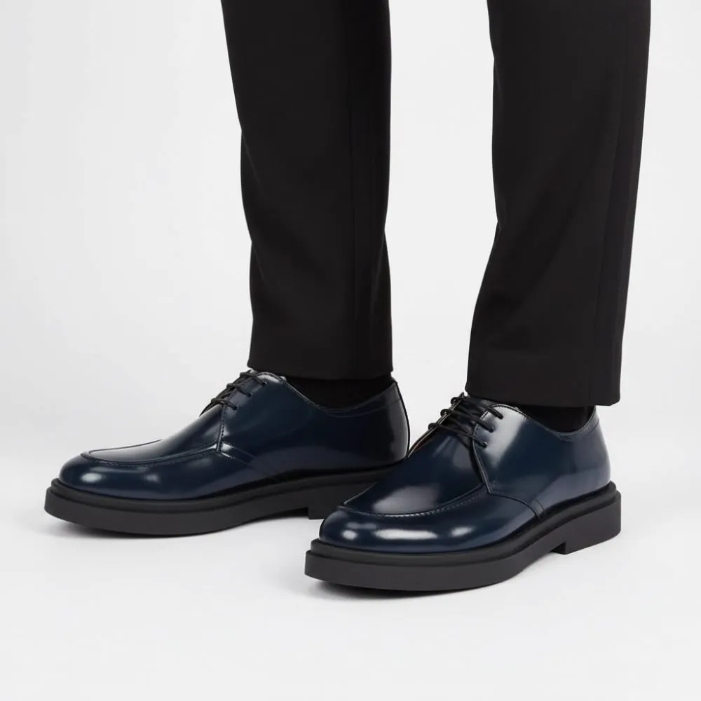Efekt szczotkowanego lustraRęcznie robione buty typu derby wyprodukowane we Włoszech