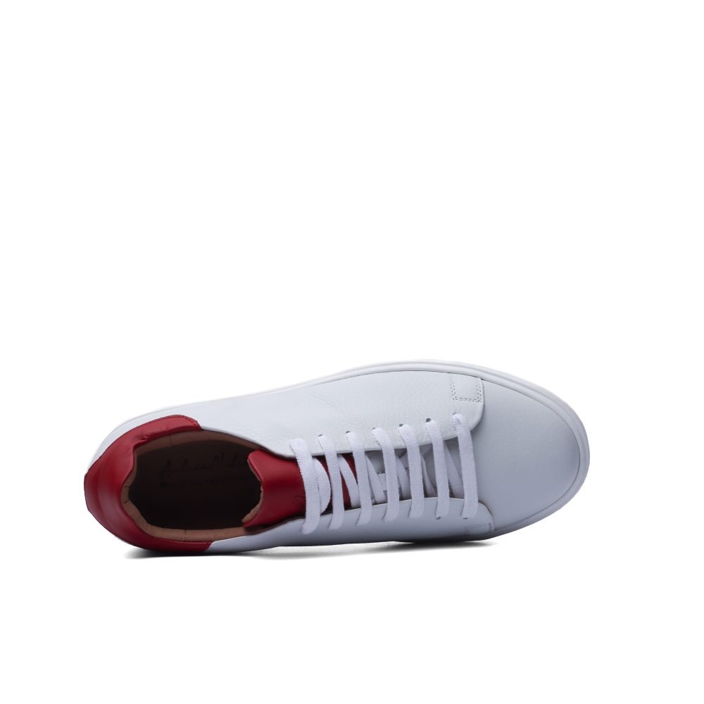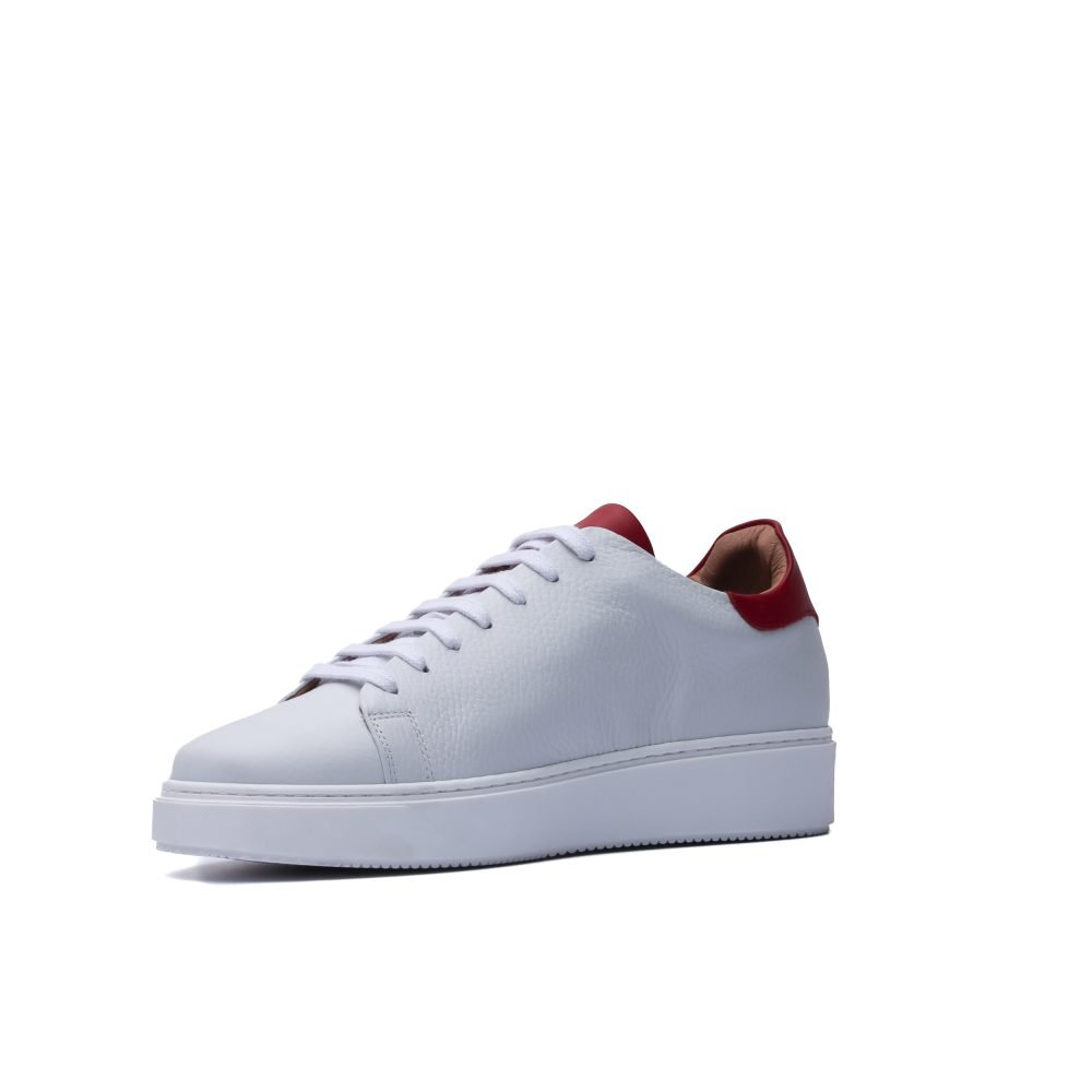 Realizzate in morbida pelle di vitello tinta a mano nel colore bianco con tallone e linguetta nel colore rosso.