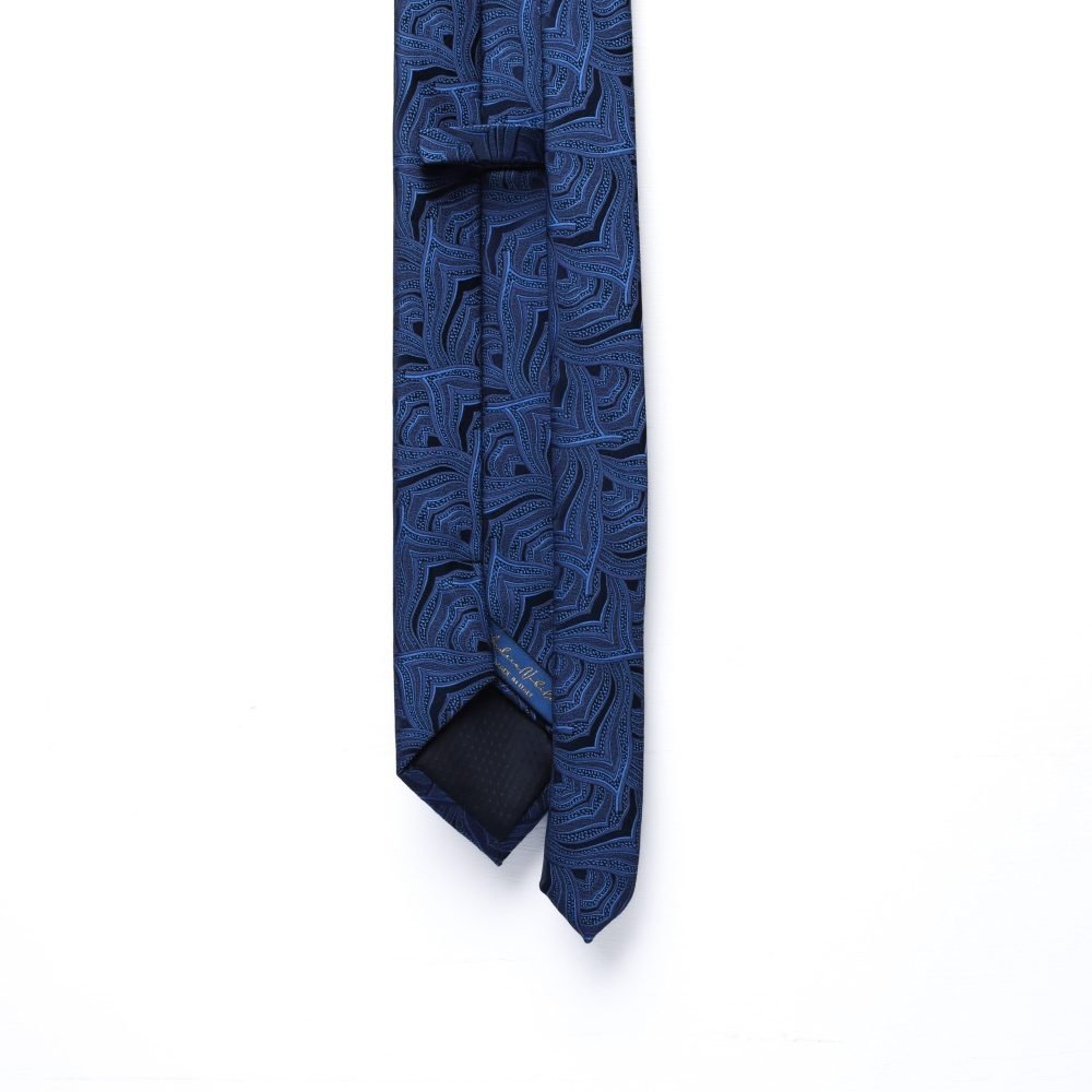 L’eleganza prende forma organica con questa cravatta in pura seta italiana, interamente realizzata a mano. Il motivo “Leaf”, ispirato a linee sinuose e intrecci vegetali, crea un effetto visivo di grande movimento e raffinatezza.