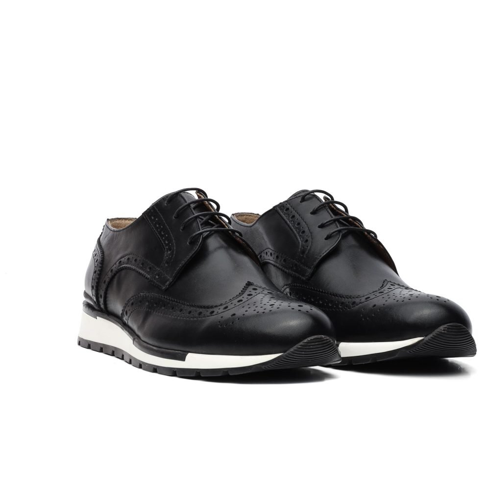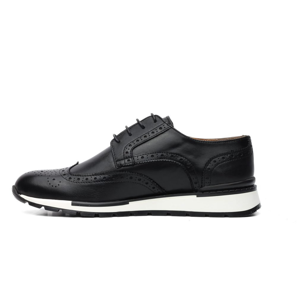 Realizzata in pelle di vitello tinta a mano nel colore nero, la parte superiore ricorda la classica derby.