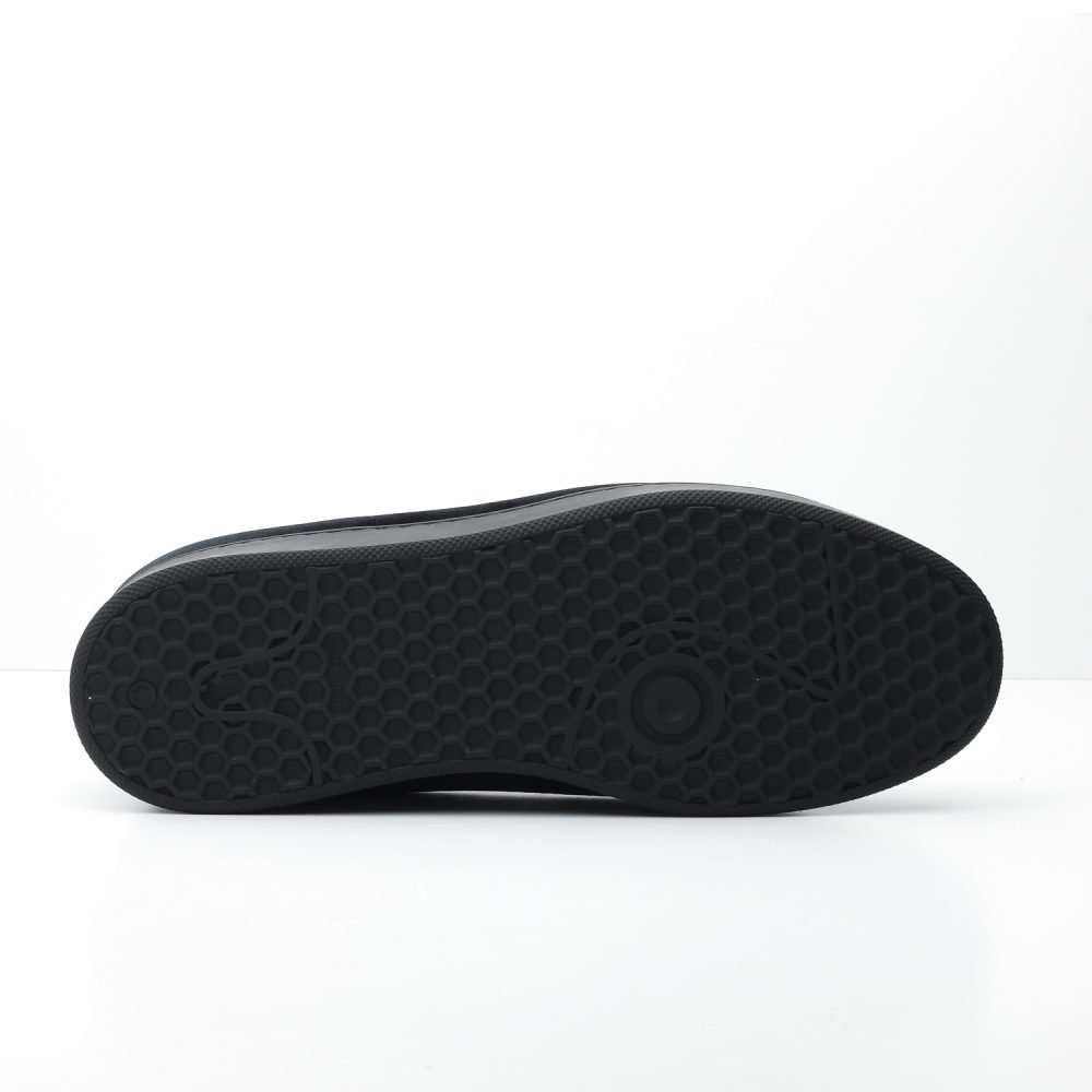 Suola nera con cucitura perimetrale e fondo antiscivolo.