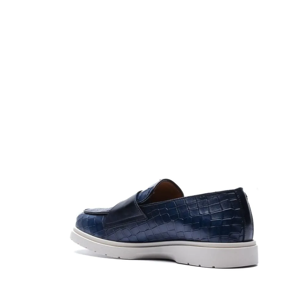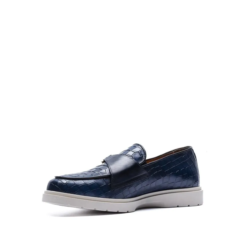 لوفر په نیلي کروکوډایل چاپ چرم کې د هک سره
