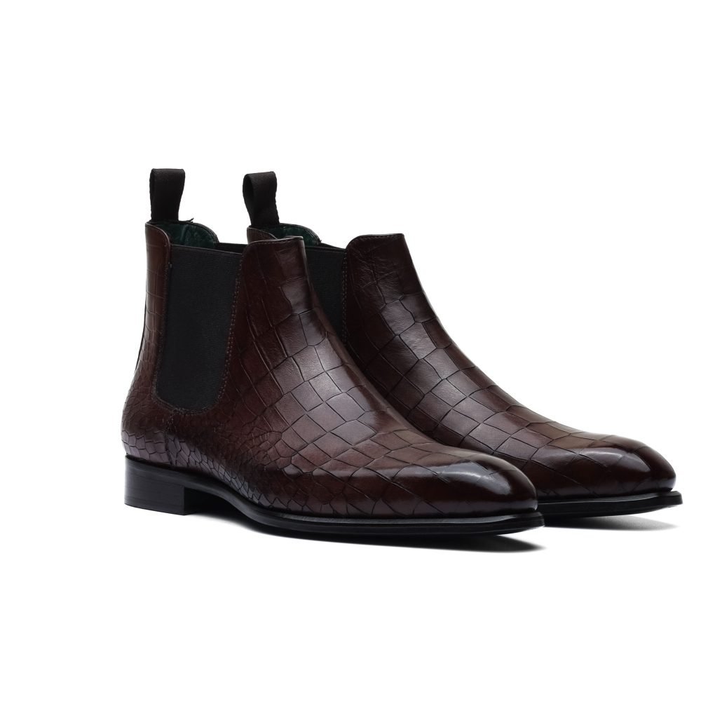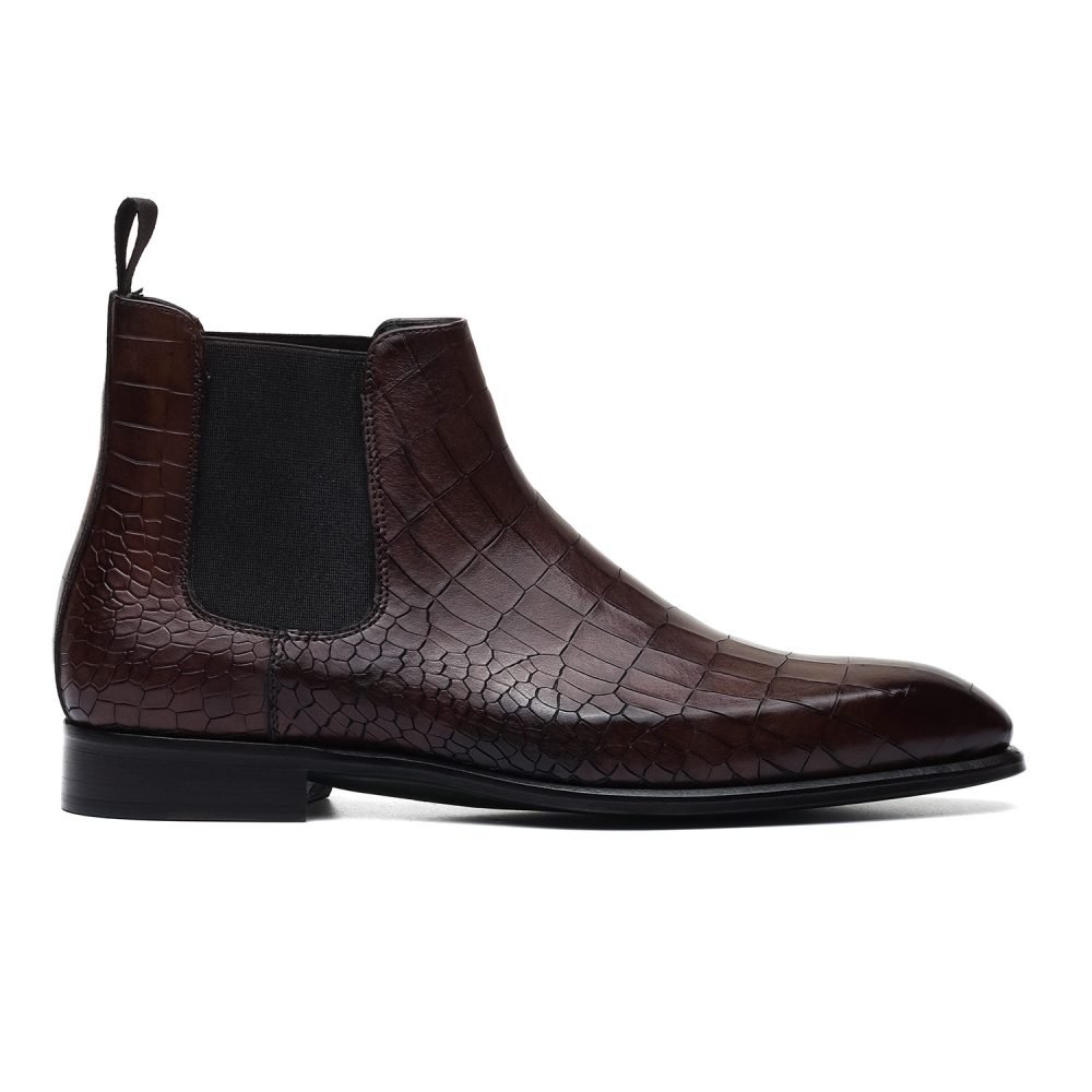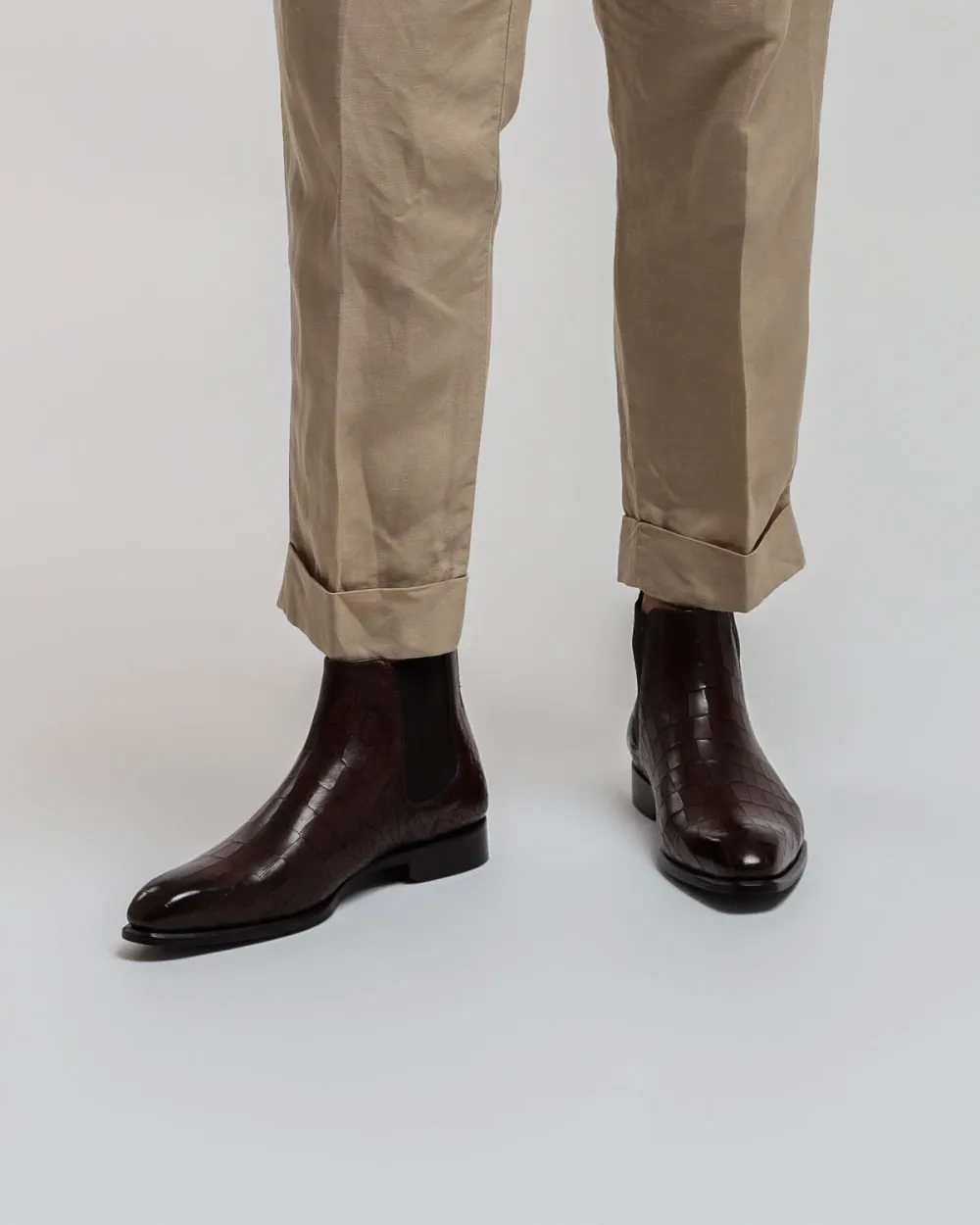 Stampa CoccodrilloCalzature artigianali made in Italy modello Chelsea Boots, caratterizzati dagli elastici laterali che rendono pratica e comoda la calzata.
