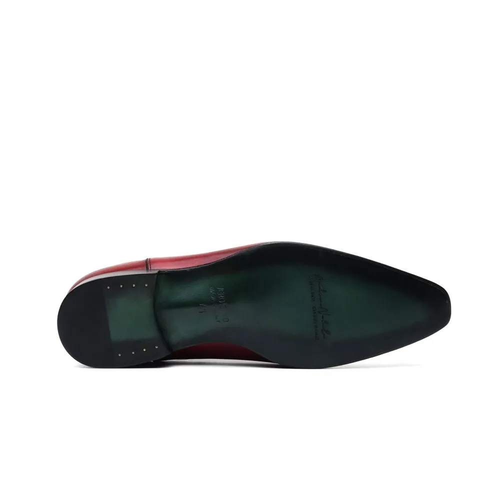 Realizzate in pelle di vitello tinta a mano nel colore rosso con punta sfumata.