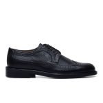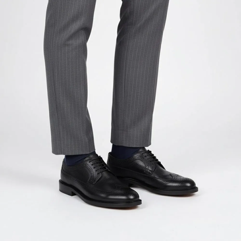 Calzatura artigianale made in Italy modello Derby stringata, caratterizzata dal disegno brogue lungo tutta la tomaia.