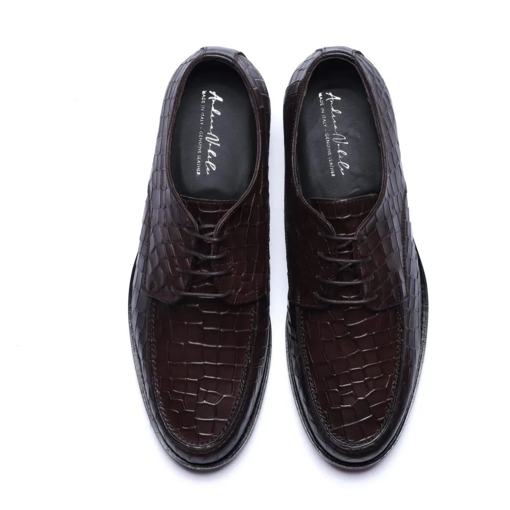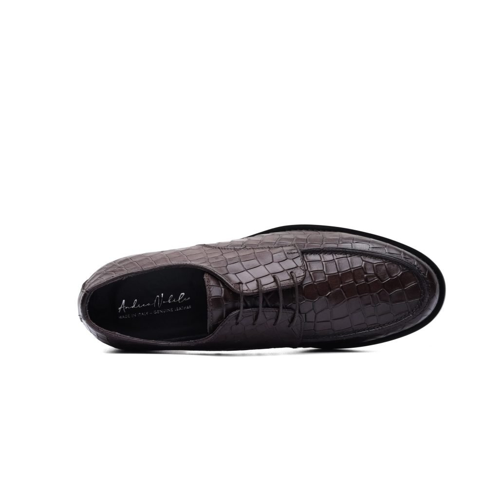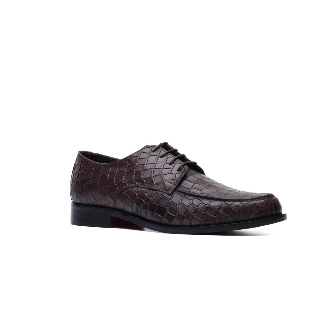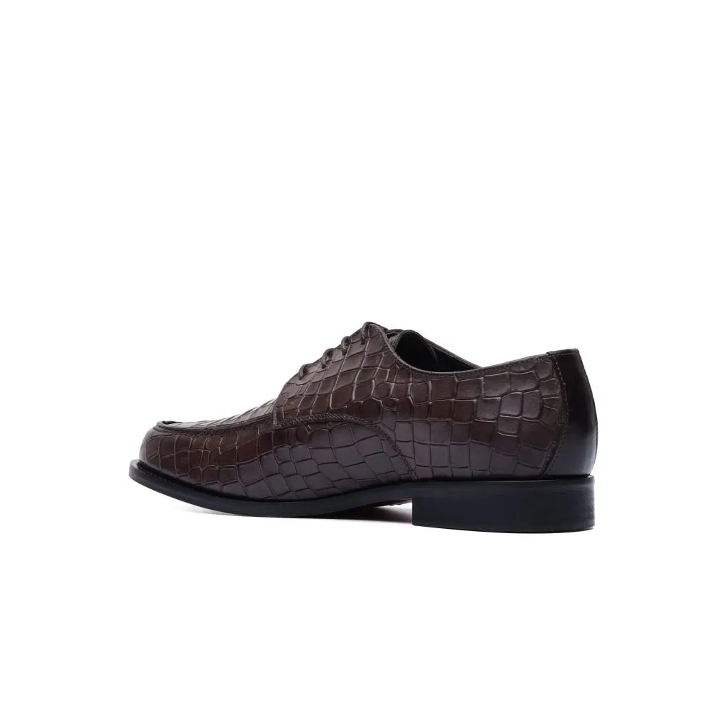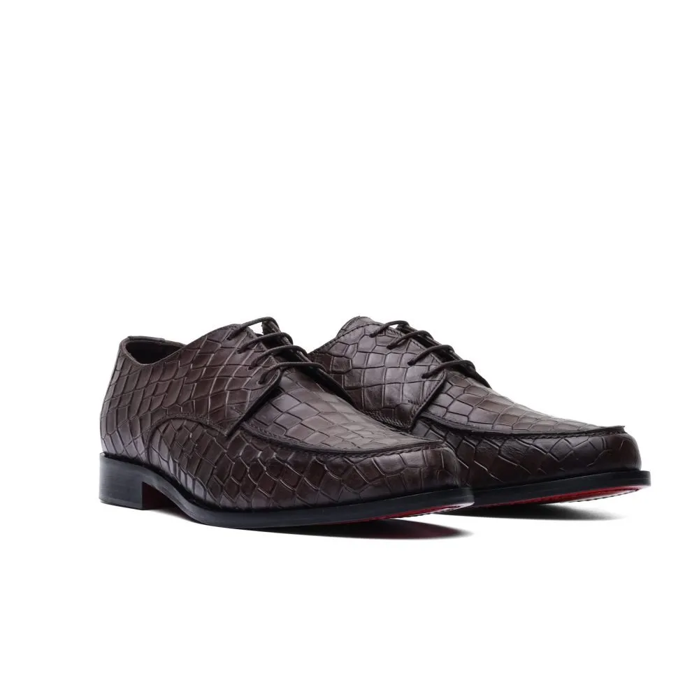 Derby in Dark Brown Leather with Crocodile Print