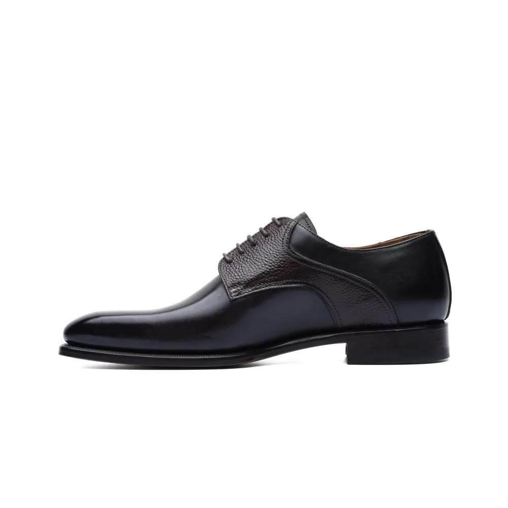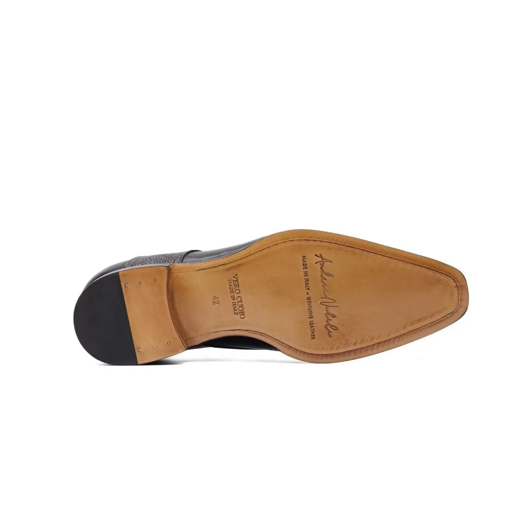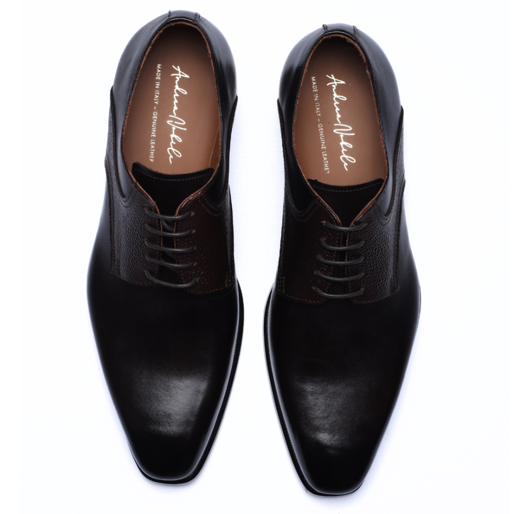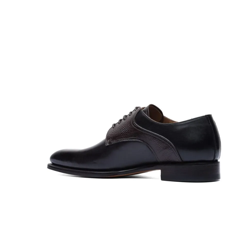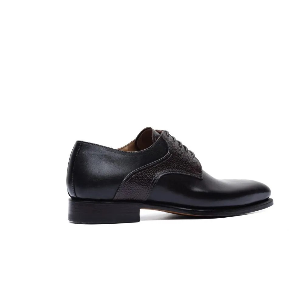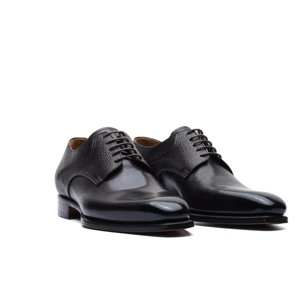 Calzature artigianali made in Italy modello Derby, con innesto in pelle stampata.