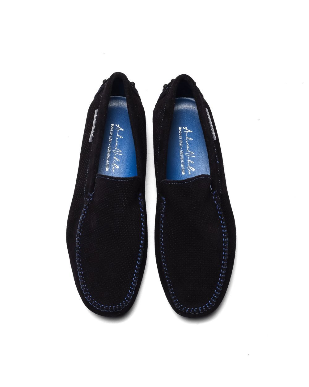 Calzature artigianali Made in Italy modello Driver Loafer, caratterizzati da micro-forature su tutta la tomaia.