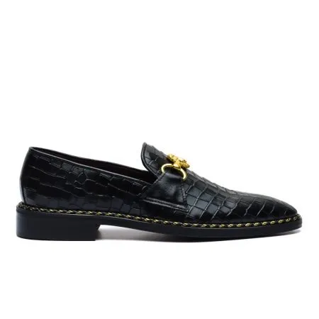 Stampa CoccodrilloCalzature artigianali Made in Italy modello Mocassino, rese particolari dalla pelle con stampa coccodrillo.