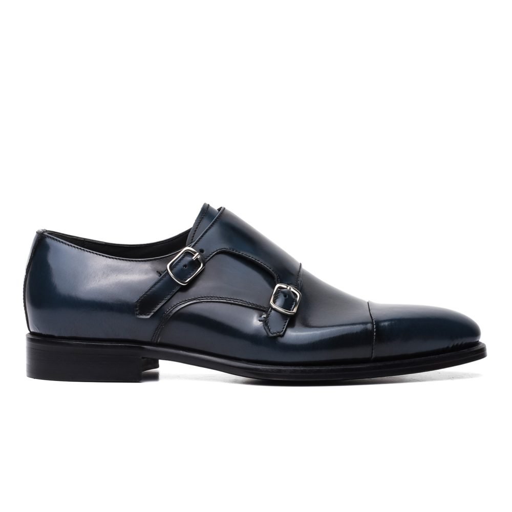 Monk Strap Doppia Fibbia in Pelle Spazzolata Blu
