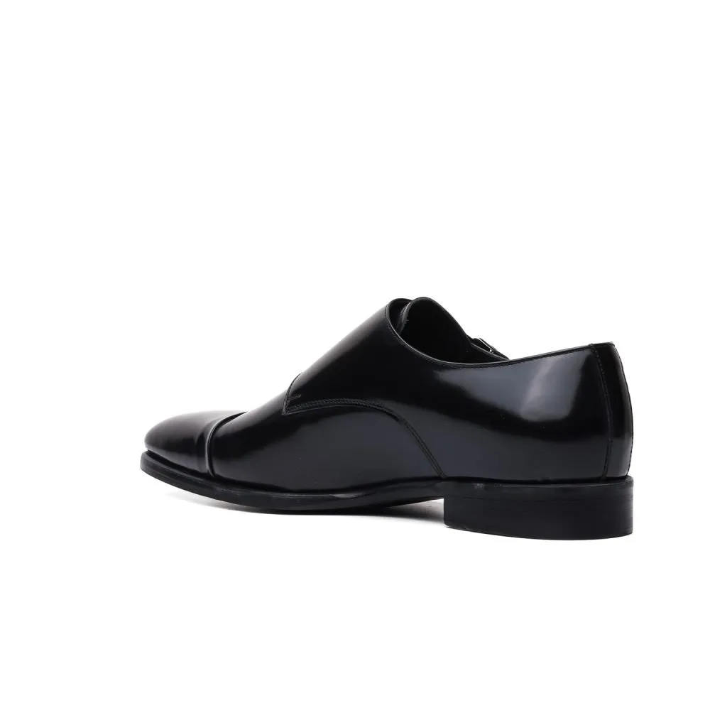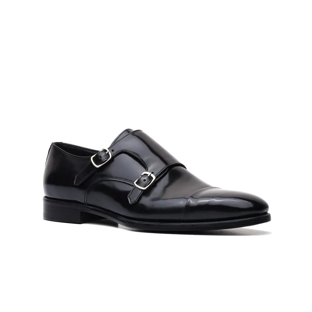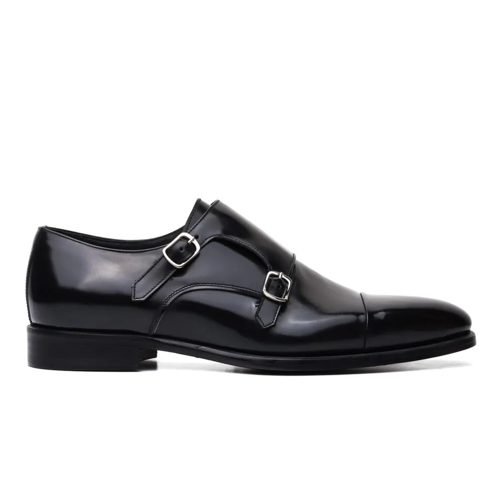 Monk Strap Doppia Fibbia in Pelle Spazzolata Nera