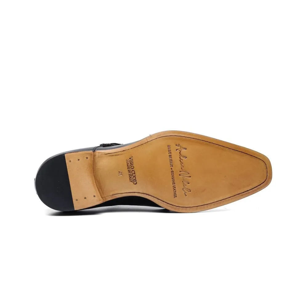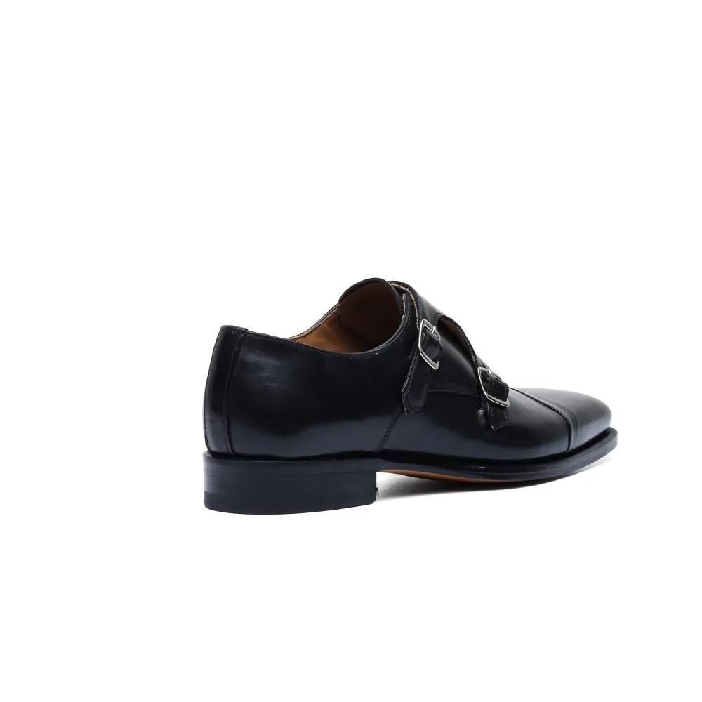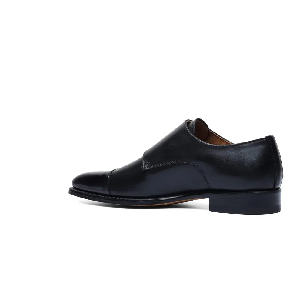 Monk Strap in Black Leather with Tip