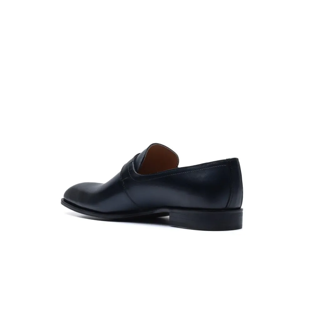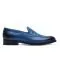 Realizzate in pelle di vitello tinta a mano nel colore blu con punte e talloni sfumate, riportano la chiusura con cinturino e fibbia metallica.