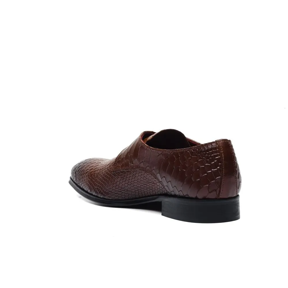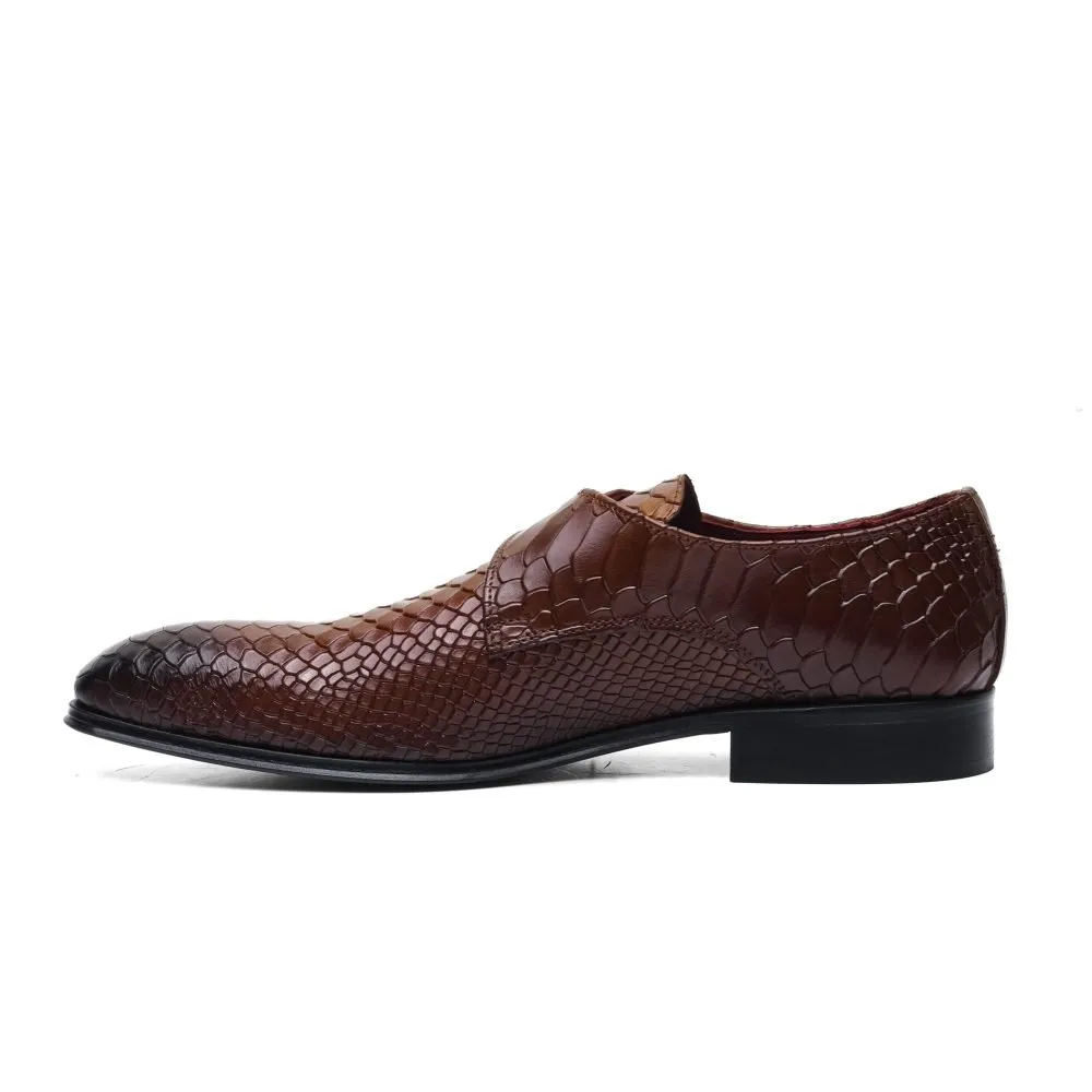 Calzature artigianali Made in Italy modello Monk Strap o anche conosciute come “mono fibbia”, caratterizzata dalla stampa effetto anaconda su tutta la tomaia.