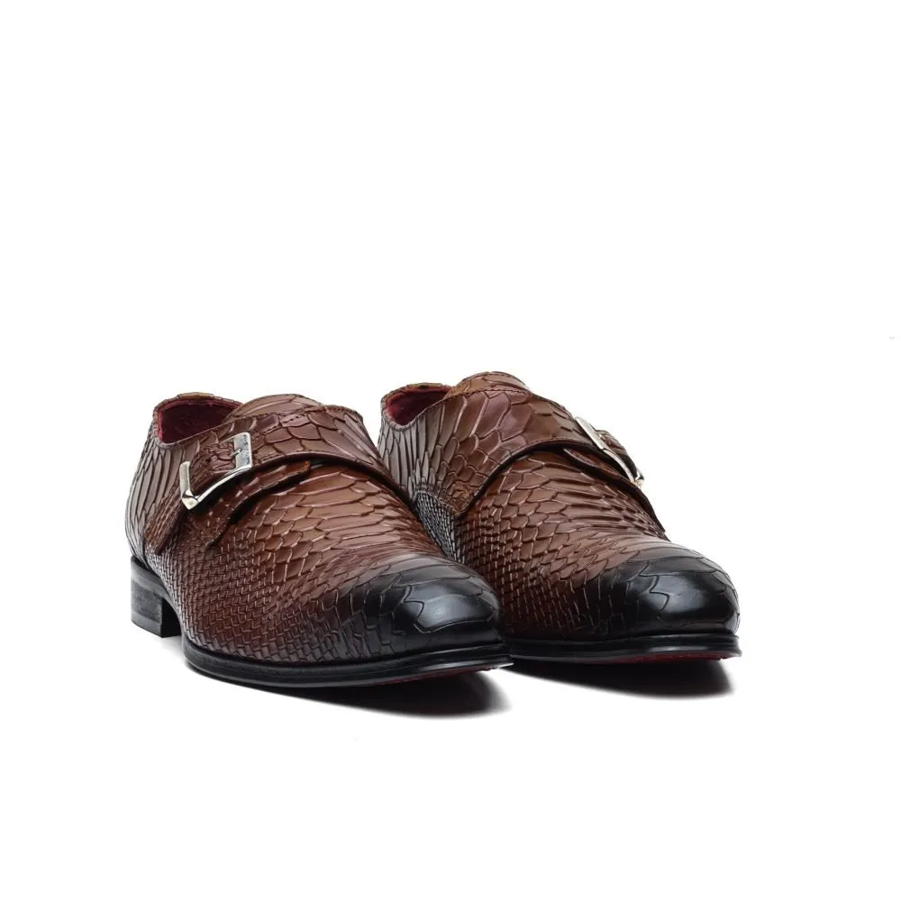Stampa AnacondaCalzature artigianali Made in Italy modello Monk Strap o anche conosciute come “mono fibbia”, caratterizzata dalla stampa effetto anaconda su tutta la tomaia.