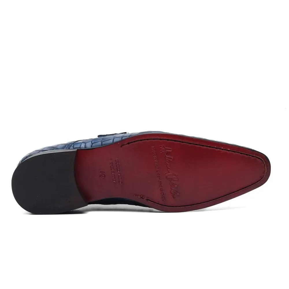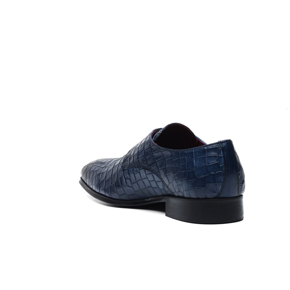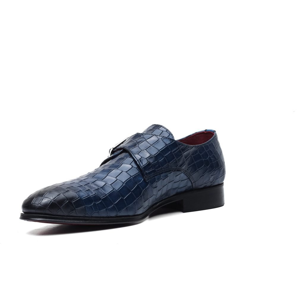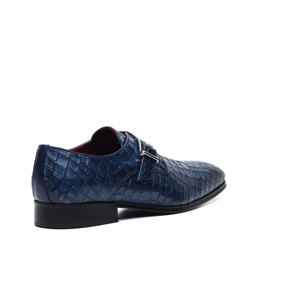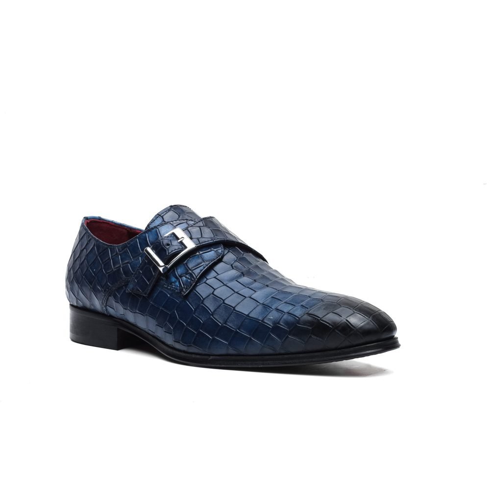 Calzature artigianali Made in Italy modello Monk Strap o anche conosciute come “mono fibbia”, caratterizzata dalla stampa effetto coccodrillo su tutta la tomaia.