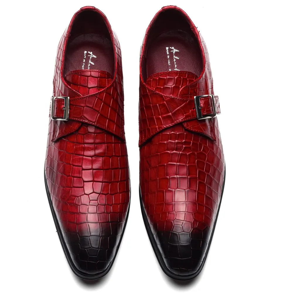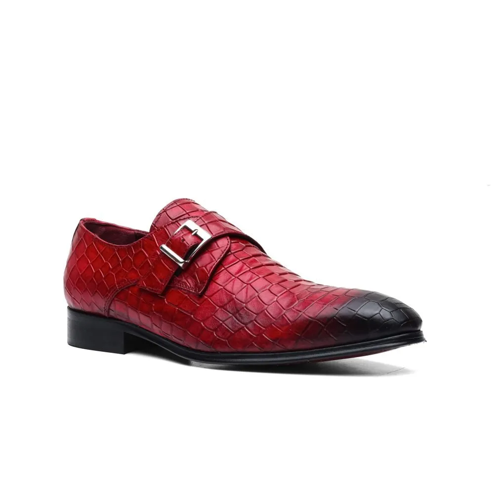 Monk Strap Single Buckle with Crocodile Print