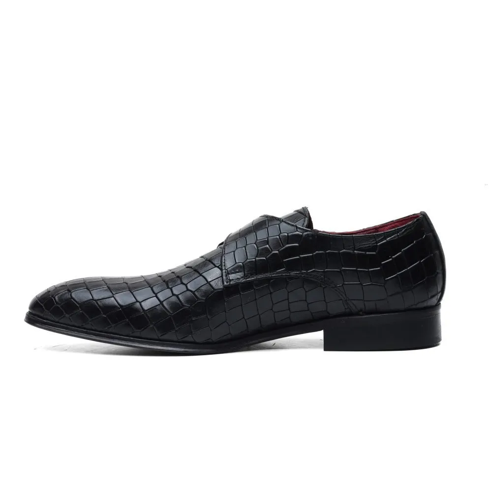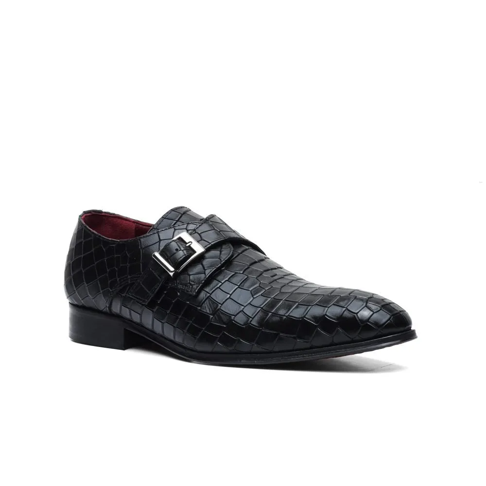 Calzature artigianali Made in Italy modello Monk Strap o anche conosciute come “mono fibbia”, caratterizzata dalla stampa effetto coccodrillo su tutta la tomaia.