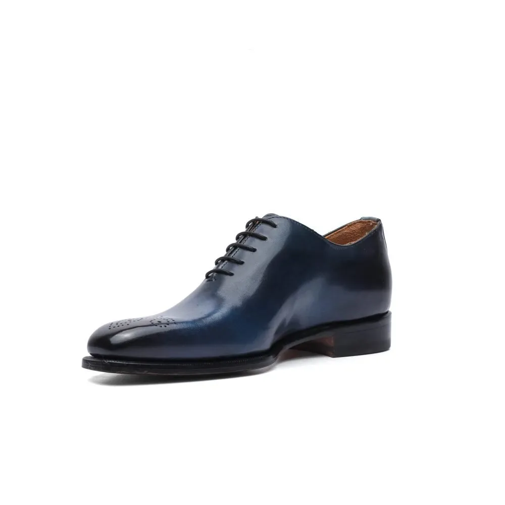 Calzature artigianali Made in Italy stringata modello Oxford, caratterizzata dal dettaglio brogue sulla punta.