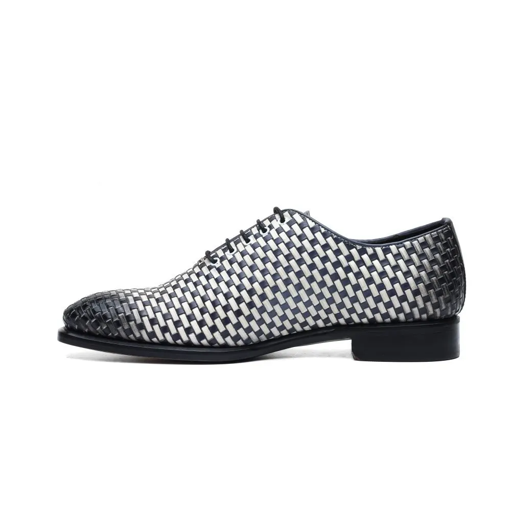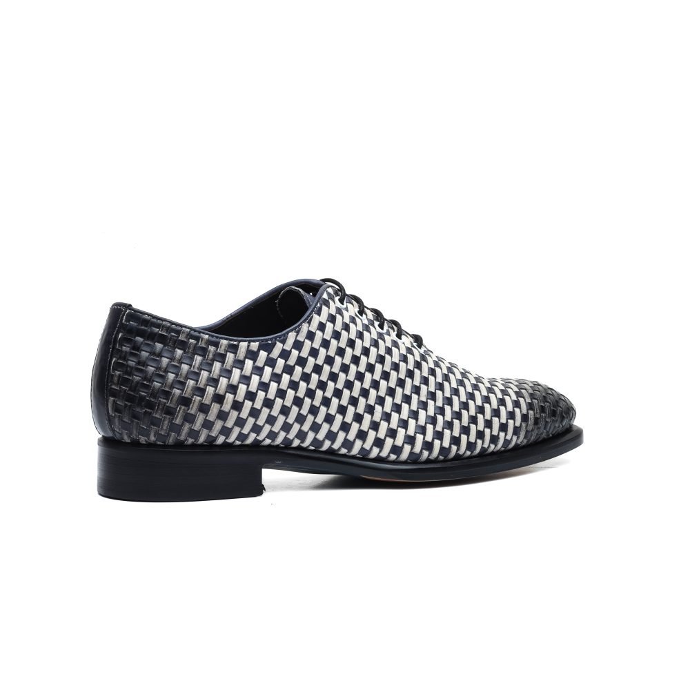Oxford in Pelle Intrecciata Blu e Bianca