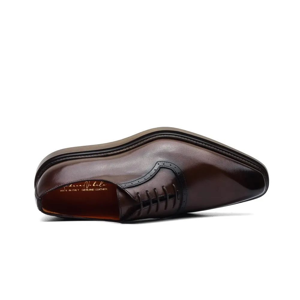 Calzature stringate artigianali Made in Italy modello Oxford o anche denominate “Francesine”, resa particolare da micro-forature sulla parte alta della tomaia.