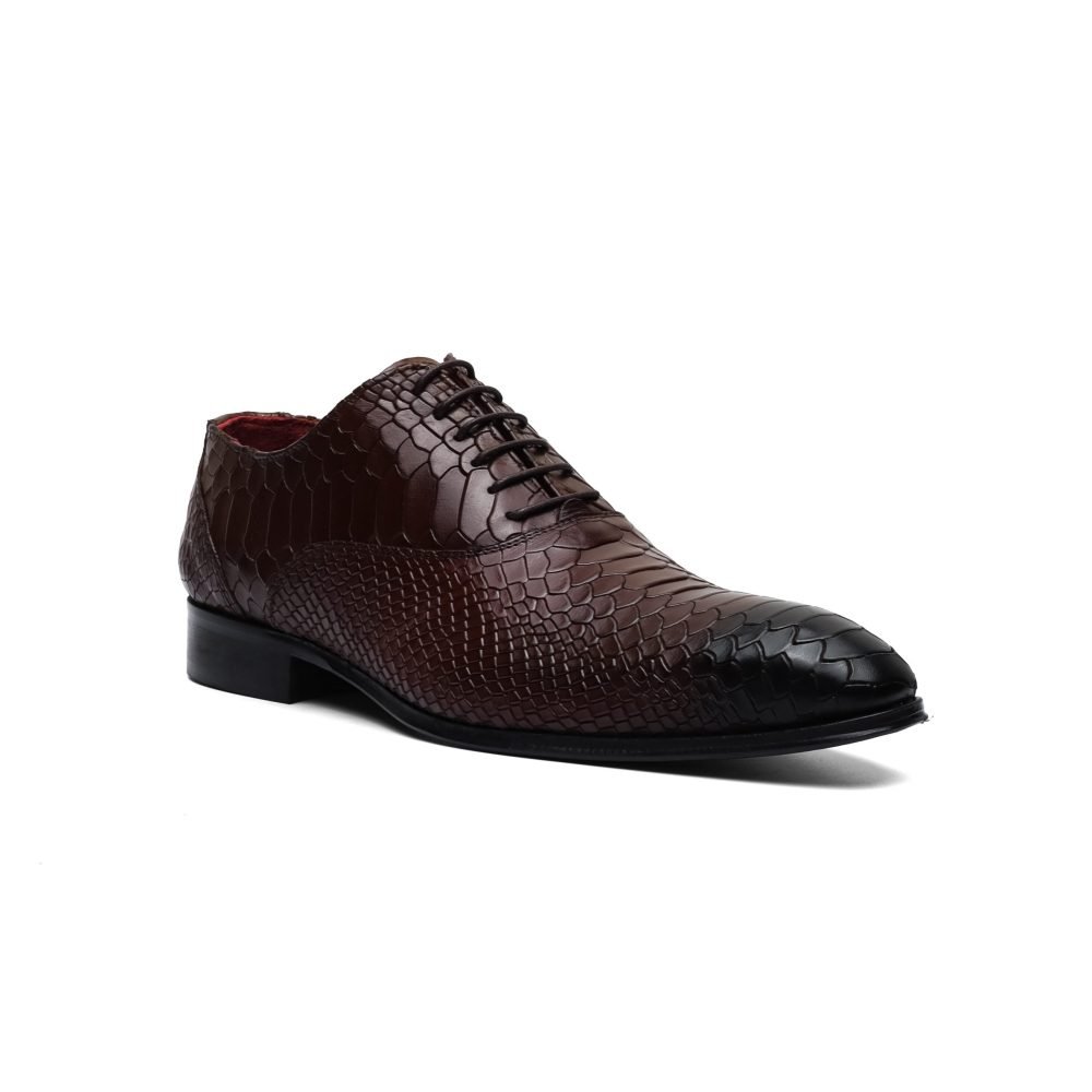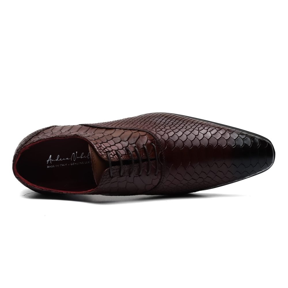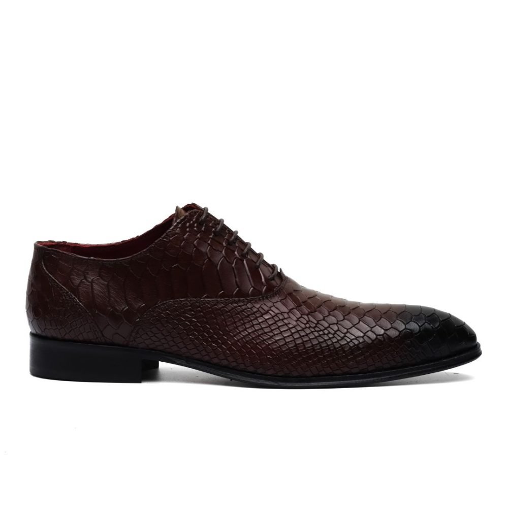 Calzature stringate artigianali Made in Italy modello Oxford o anche denominate “Francesine”, caratterizzata dalla stampa effetto anaconda su tutta la tomaia.